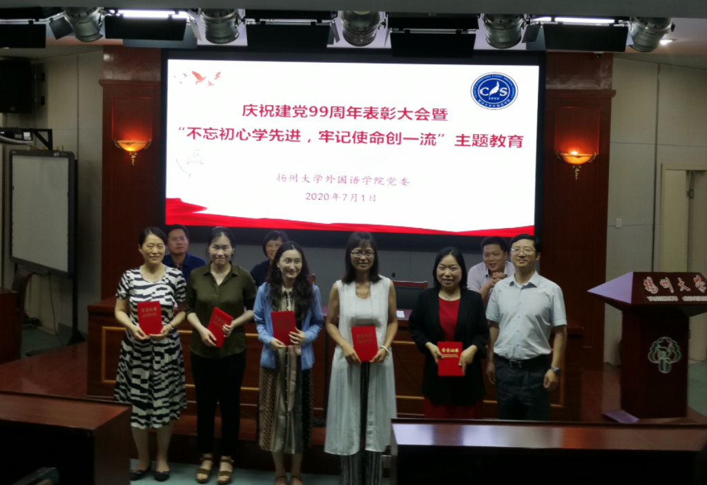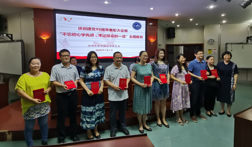 会上,王金铨院长宣读了《中共扬州大学外国语学院委员会关于“七一”表彰优秀共产党员和先进个人的决定》,院领导为受表彰同志颁发荣誉证书并合影留念。