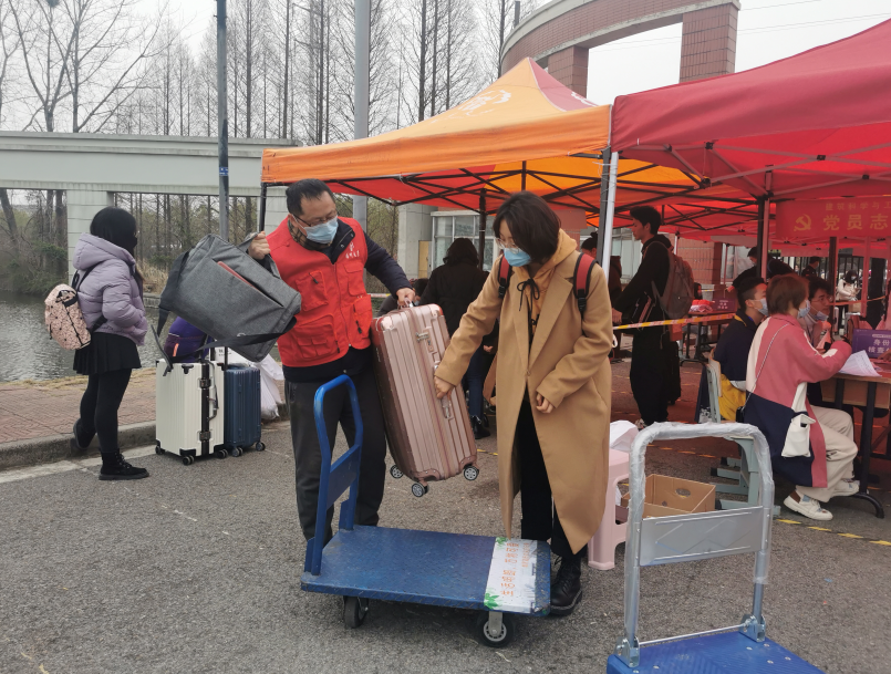 扬子津校区的校门口,志愿者们井然有序地协助学生返校工作,测量体温、核对信息、细心引导、搬运行李,尽管初春的寒风凛冽不减,但老师们的热心与温情让返校学生和他们的家长放心了许多。“迎接学生返校的工作量很大、很细致,现在正是需要志愿者的时候,又正值雷锋日,我们教职工当然也要做出表率!辛苦一点没什么!”正在帮助学生搬运行李的张燕玲老师这样说道。