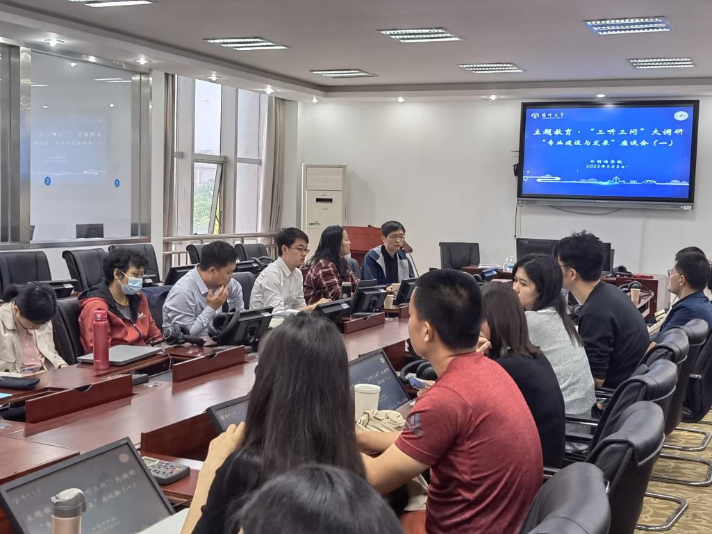 外国语学院党委坚持问题导向、目标导向、效果导向,把大兴调查研究作为提升主题教育实效的重要抓手,深入开展“三听三问”调研活动。5月5日下午,学院党委召开“新文科视野下的专业建设与发展”座谈会,在调研中倾听声音、掌握实情,运用党的创新理论研究新情况、解决新问题、推动新发展。院党委书记居学明、副院长(主持工作)何山华、各专业负责人以及20余名专任教师代表参加座谈会,活动由副院长张强主持。