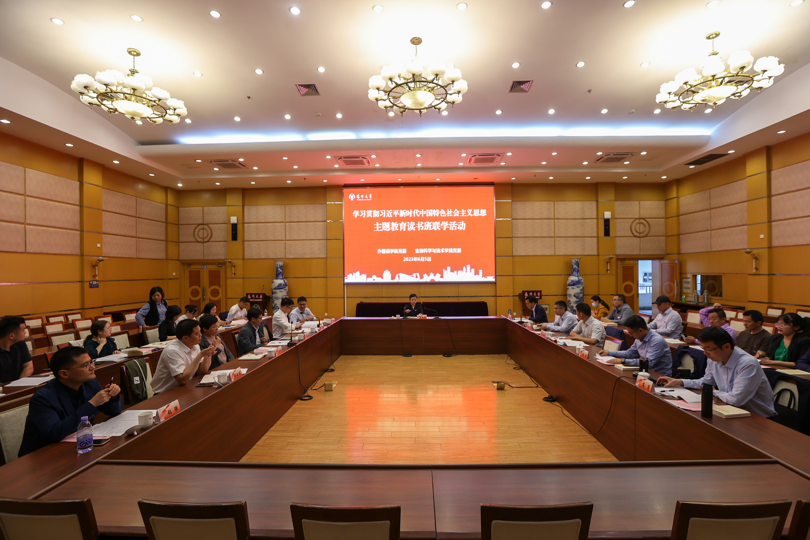 为深入开展学习贯彻习近平新时代中国特色社会主义思想主题教育,加强理论学习交流,6月5日,我院与生物科学与技术学院在荷花池校区教学主楼二楼多功能厅共同举办主题教育读书班联学活动,副校长蔡颖蔚到会巡学旁听并讲话,活动由生物科学与技术学院党委书记陆江峰主持。