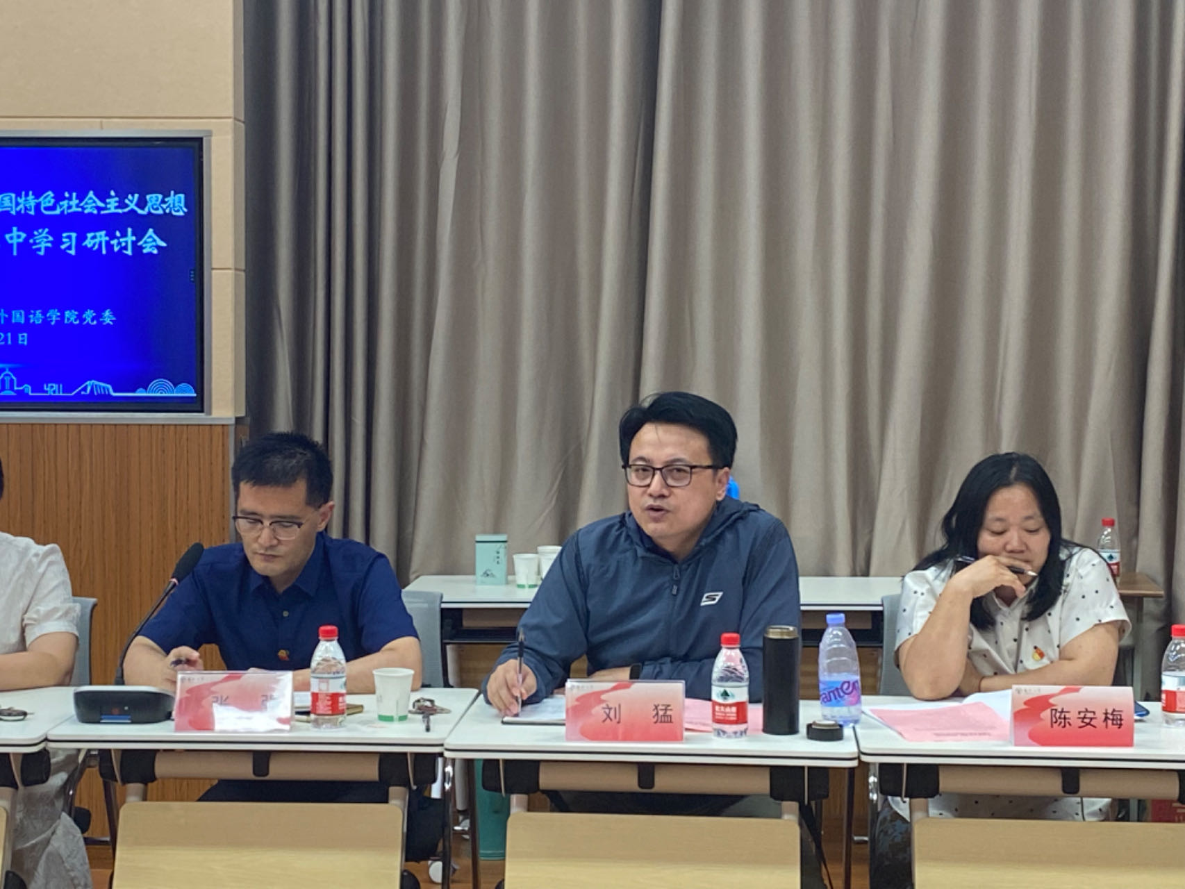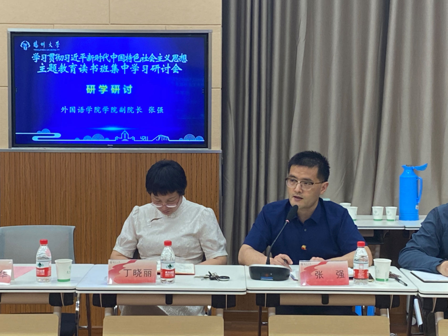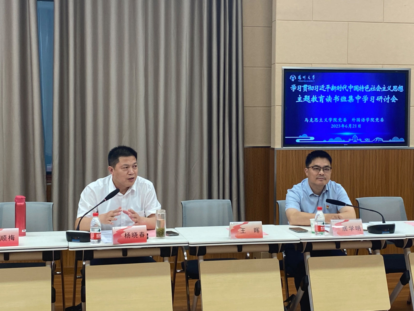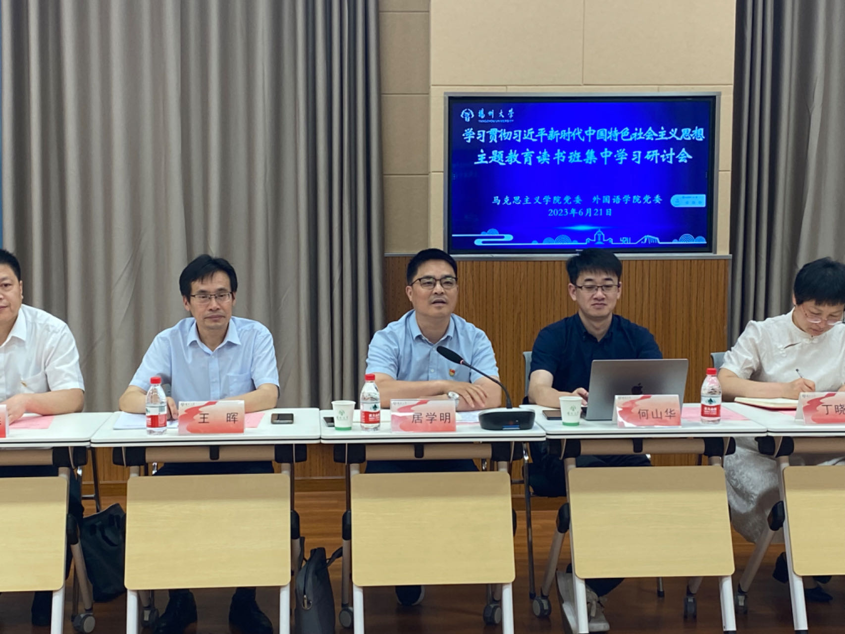 为扎实推进主题教育,强化主题教育读书班理论学习能力,深入学习贯彻习近平总书记关于课程思政的重要论述,全面落实立德树人根本任务。6月21日下午,我院与马克思主义学院在文津楼N409会议室共同举办主题教育读书班集中学习研讨会,我院党委书记居学明主持会议。