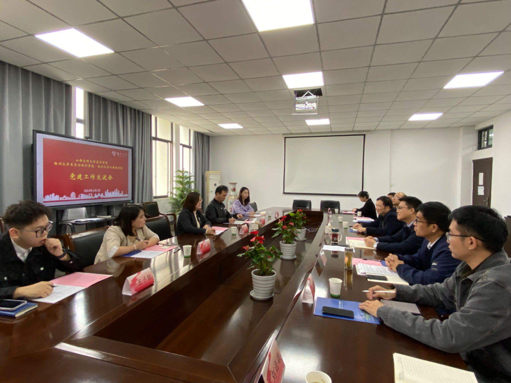 居学明介绍了学院建院历史、学科专业建设情况,从支部设置、基层党支部建设、青年教师队伍建设等方面分享了党建工作经验做法,季小民全面介绍了专业教师第一党支部的建设路径和特色做法。双方围绕样板党支部建设、人才培养、课程思政等内容进行了深入热烈的交流和讨论。