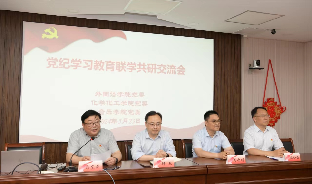 5月23日,外国语学院、化学化工学院 、音乐学院党委理论学习中心组开展党纪学习教育联学共研交流会。副校长韩杰到会“巡学旁听”并提出指导意见。