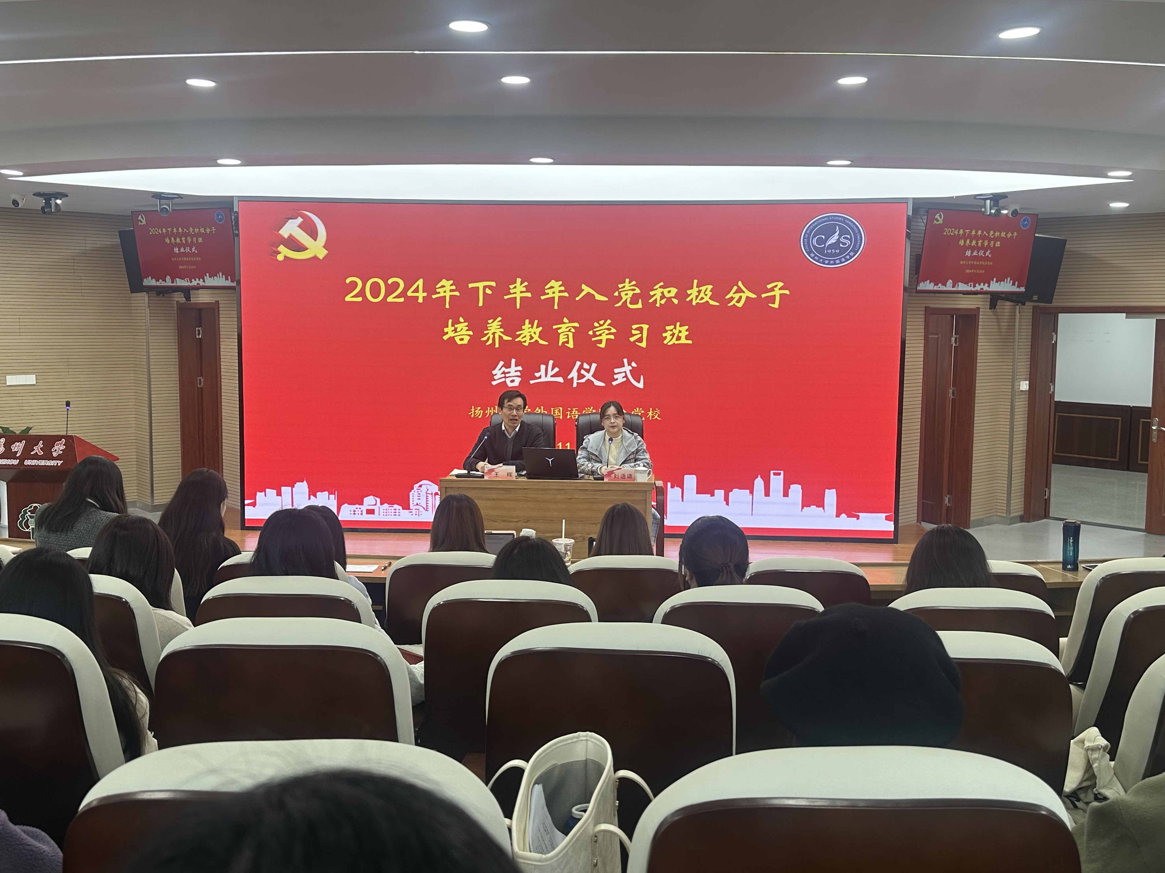 为深入学习党的二十大、二十届三中全会精神和校第四次党代会精神,巩固深化习近平新时代中国特色社会主义思想主题教育成果,贯彻落实《中国共产党发展党员工作细则》《扬州大学发展党员教育培训工作细则》的要求,进一步加强对发展对象的培养教育,2024年11月17日-11月25日,外国语学院分党校成功举办2024年下半年发展对象短期集中培训班。本期培训班以集中学习和个人自学相结合的形式开展,包括专题讲座、网络课程、实地研学以及专题研讨等环节。外国语学院33名发展对象参加本次培训。