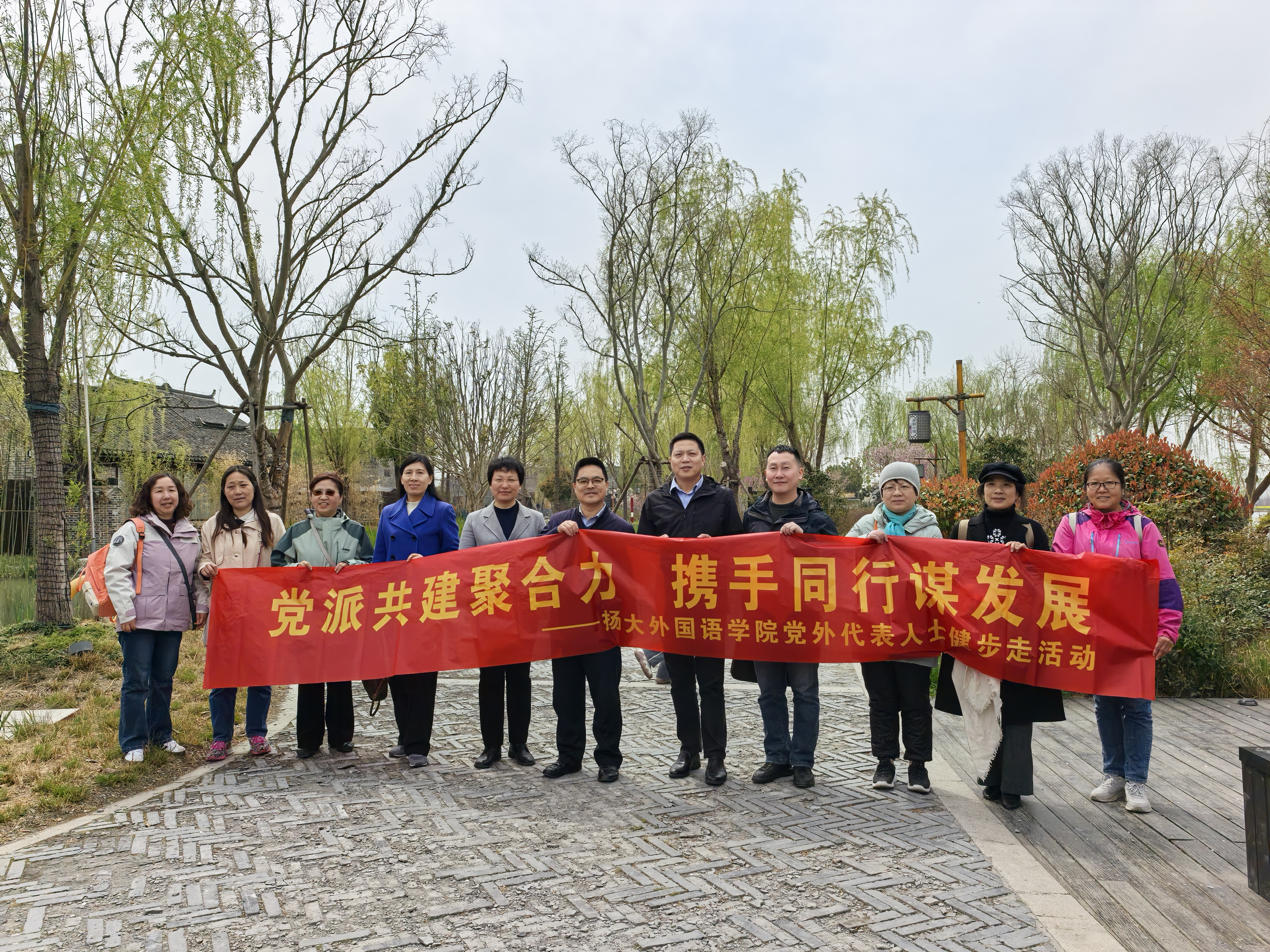 3月30日上午,外国语学院组织党外人士代表前往盐城市建湖县淮剧小镇举办了“党派共建聚合力,携手同行谋发展”健步走活动。学院党委书记居学明、副院长丁晓丽、杨晓春以及学院党外人士代表共同参与了此次活动。
