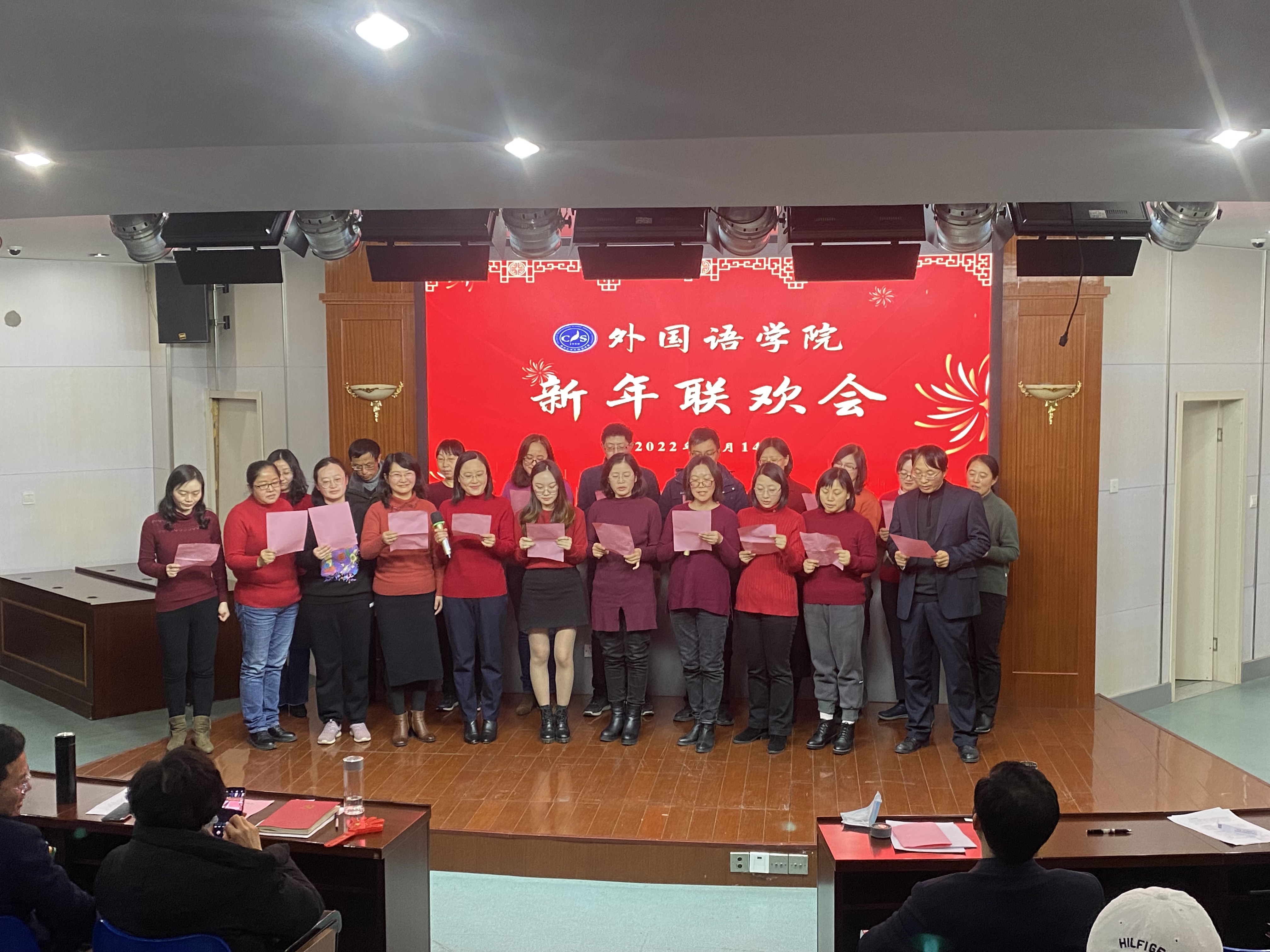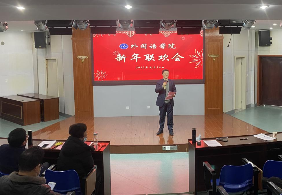 1月14日下午,外国语学院工会在扬子津校区笃行楼报告厅举行了2022年新年联欢会。全院教职工欢聚一堂,庆贺新年,共同回首硕果累累的2021年,展望虎虎生威的2022年。