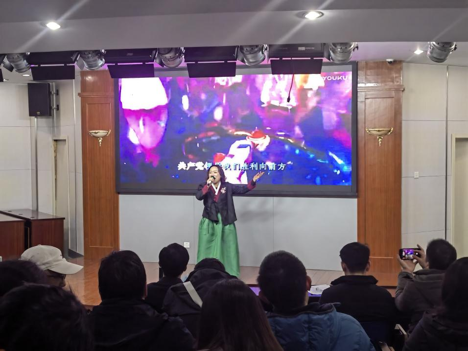 联欢会在大学英语二部老师们悠扬的歌声中拉开序幕,《亲爱的旅人啊》唱出了大家对归乡的期待。各系部都带来了他们的精彩节目:《爱的奉献》《九月九酿新酒》《没有共产党就没有新中国》《蔷薇》等,声动梁尘、情感充沛。英语教育系陆振慧老师还带来了一段别开生面的评书《莽撞人》,外籍语言教师也积极参加联欢活动,秀地道中文、展异国风情,歌声里充满了欢乐与祝福。现场气氛热烈,掌声不断。