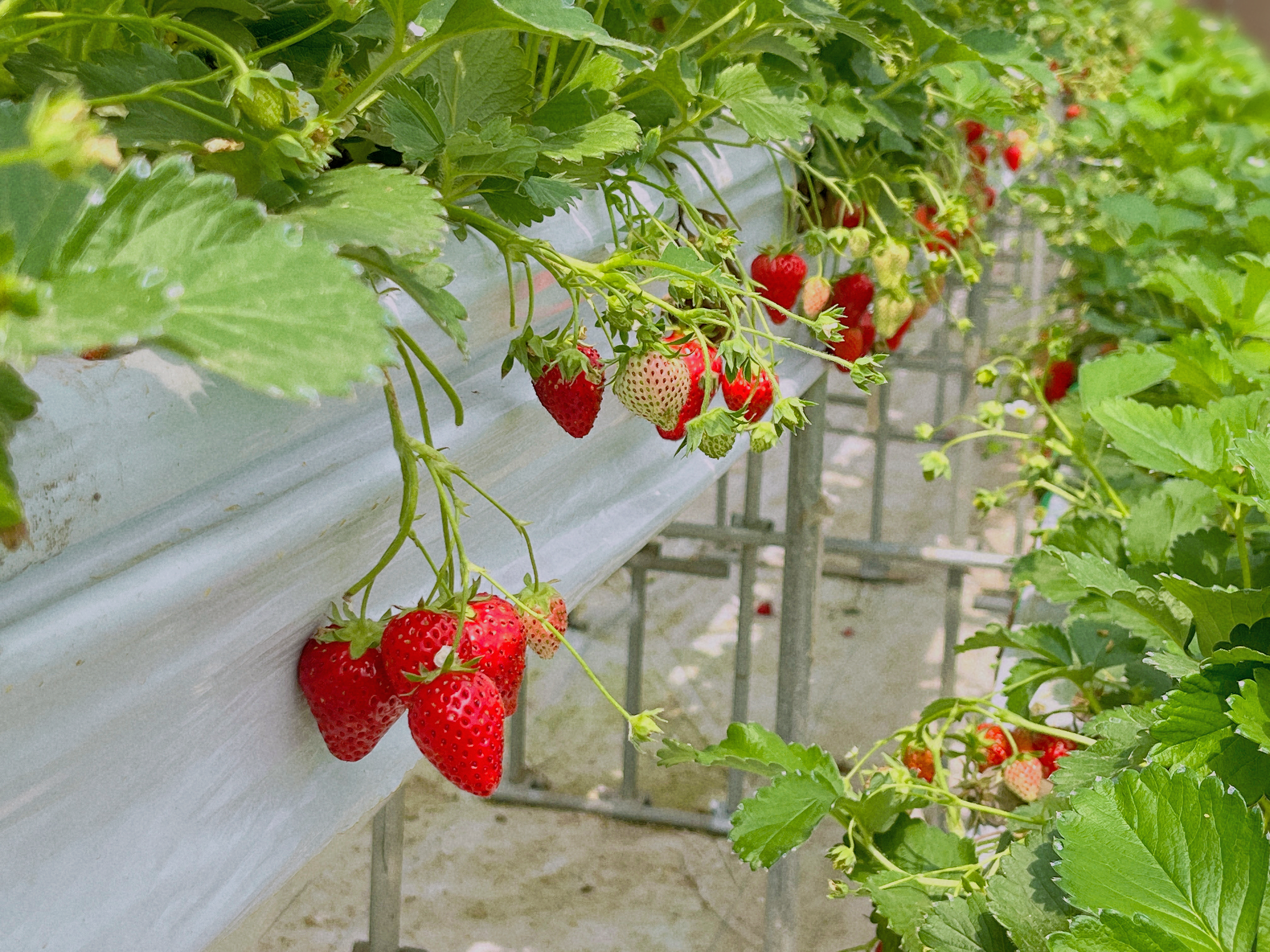 接着,在农场工作人员的带领下参观了蔬菜、水果基地,了解了有机种植技术。随后,大家进入草莓种植大棚,采摘品种多样、颜色各异的果实。