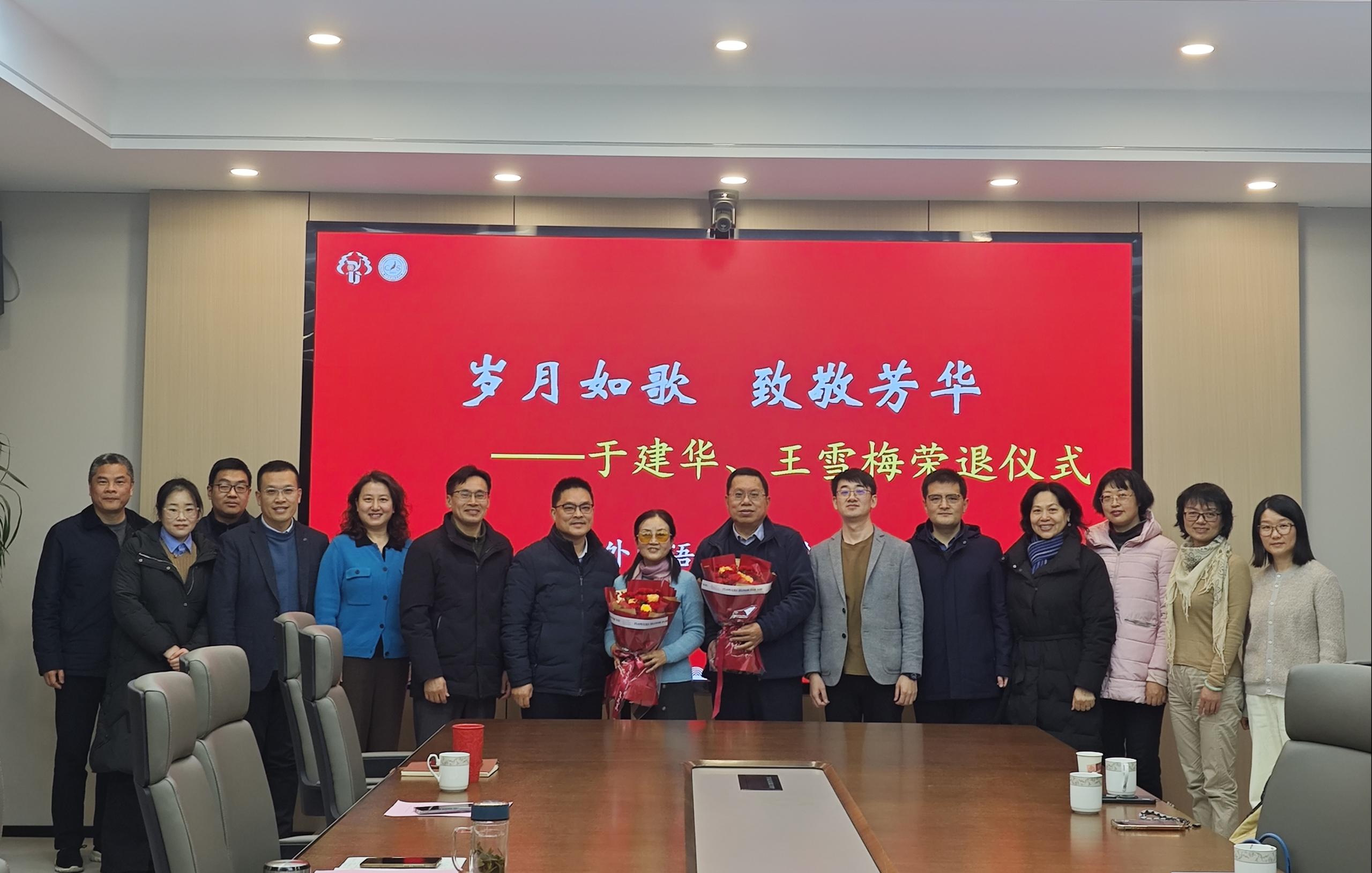2026年3月4日下午,外国语学院工会为于建华、王雪梅两位老师举办了温馨而庄重的荣退仪式。学院全体领导班子成员出席,与教职工代表齐聚一堂,共同回顾两位老师数十载育人的光辉历程,并送上真挚的祝福。