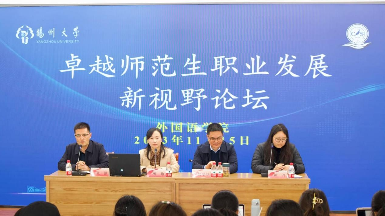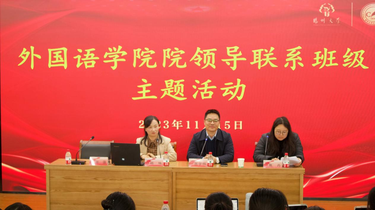 为进一步优化卓越师范生人才培养模式,全面促进师范生就业与职业发展,11月15日下午,我院在笃行楼报告厅成功举办外国语学院院领导联系班级主题活动暨卓越师范生职业发展新视野论坛。扬州市邗江区实验学校副校长杨艳为主讲嘉宾,外国语学院英语教育系副主任、英教2201班主任焦丹主持会议,我院党委书记居学明、副院长张强出席活动,全体师范生参加本次论坛。