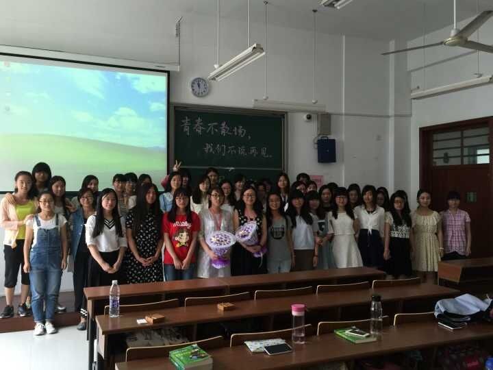 两年前,刚刚步入的大三的李佳和汪烨被任命为大一新生英教1301的班助,负责带领和帮助“小大一们”适应融入大学生活。两年里,李佳和汪烨尽职尽责,在学习和生活上给予了英教1301班的同学们许多的帮助,也和学弟学妹们结下了深厚的感情。而今年,两位小班即将毕业,英教1301的同学们非常不舍自己的两位亲学姐,想用自己的方式——举办感恩小班的主题班会活动,来感谢送别他们的优秀小班。本次主题班会以“感恩小班”为主题,围绕“青春不散场,我们不说再见”的口号展开。活动主要分为五个部分:首先,全体同学观看英教1301独家视频,回顾两年来小班与我们的美好记忆;结束视频播放后,有请两位小班发表自己的观看感言;然后是互动环节,由同学们提问,向两位优秀小班咨询考研考编的相关问题;将活动带入高潮的要数颁奖时刻,伴着欢快激昂的进行曲,班主任缪老师和外院崔书记共同为两位学姐颁发英教1301最佳小班奖,肯定两年来她们的辛勤付出;并由两位颁奖嘉宾作总结性致辞,简评本次活动并提出对我们今后的期望;最后由班长和团支书宣布本次主题班会的结束。大家纷纷与小班合影留念,留下最珍贵的瞬间。