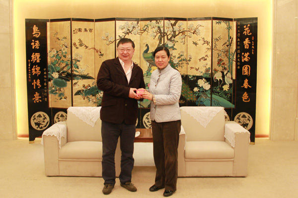 12月23日,校党委书记姚冠新会见江南模塑科技股份有限公司董事长兼总经理曹克波校友。副校长陈耀向曹克波校友赠送校友徽章。