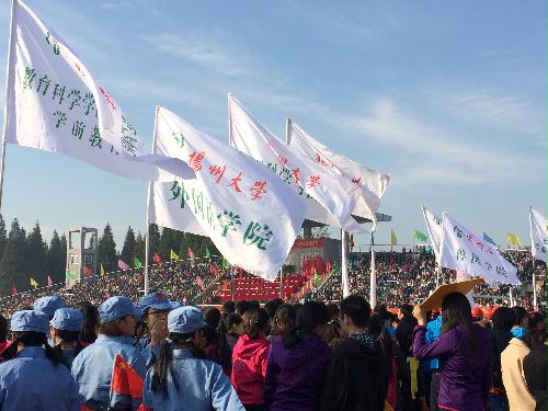 11月4日-6日,扬州大学第二十一届田径运动会在文汇路校区田径场隆重举行。经过两天半时间的激烈比赛,我院取得了女子团体总分第五名的成绩,同时获得体育道德风尚奖、太极拳比赛二等奖等荣誉。