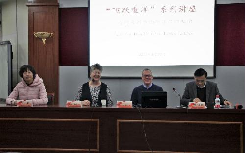 3月23日上午10点,英国哈德斯菲尔德大学语言学专业硕士生项目介绍会在笃行楼外院报告厅举行,主讲嘉宾是来自该校英语系博士生导师Dan McIntyre教授和Lesley Jeffries教授,我院英语专业超过120名学生参加该介绍会,气氛热烈。本次报告会的目的在于鼓励大学生出国留学,开拓视野,培养具有高竞争力的国际性人才,给有出国意向的同学们提供信息;同时,增强本科生对专业知识的了解与认知,引导学术科研的开展。