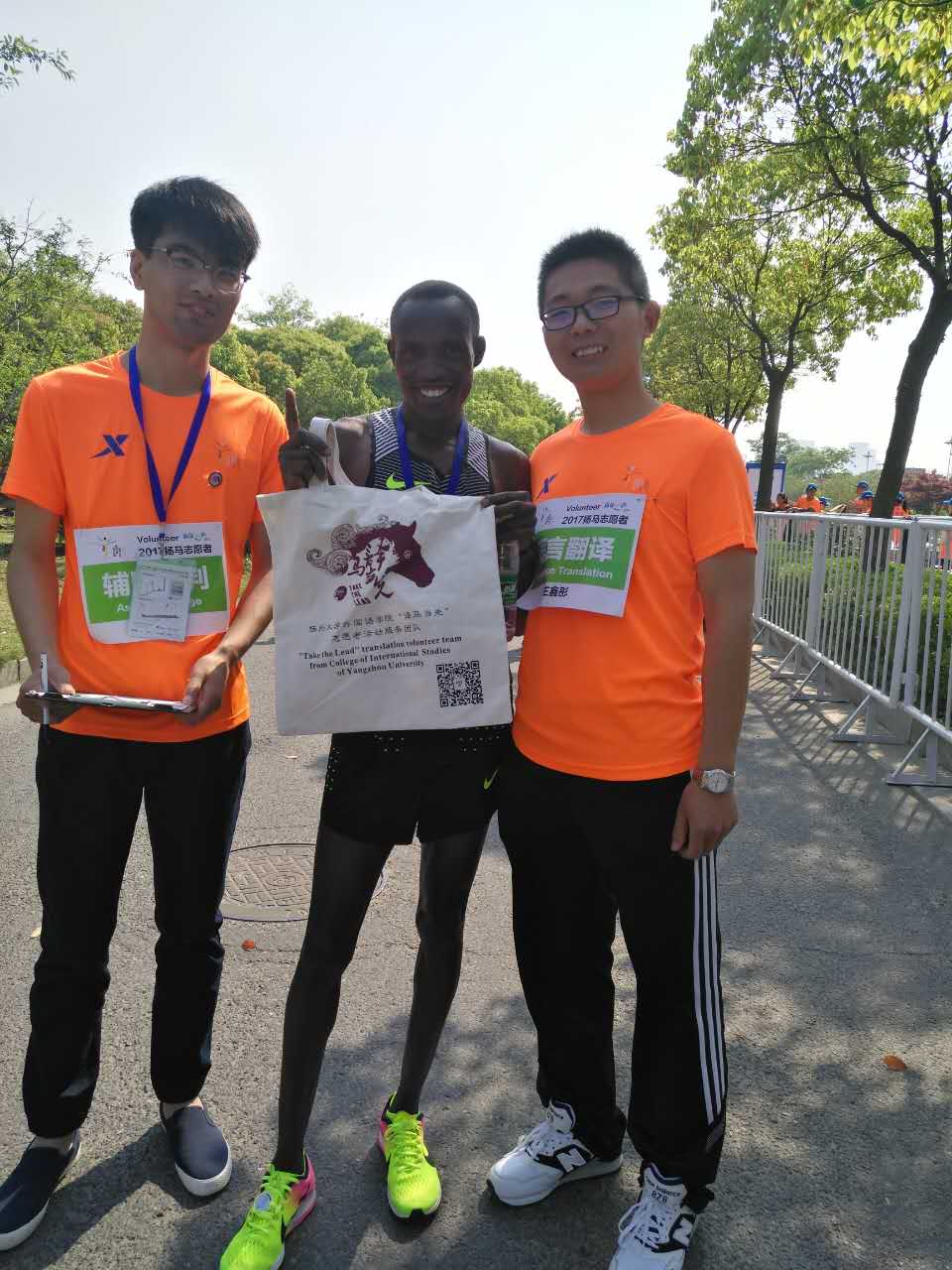 作为扬马志愿者,我院同学充分发扬吃苦耐劳的精神,不畏辛苦,全心全意为跑友服务。我院志愿者的热情服务赢得了男子组冠军BAYIH的啧啧称赞。他表示:“很高兴认识译马当先的志愿者们,感谢你们的辛勤付出,我为你们点赞!”