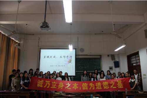 活动最后,全体同学在内容为“诚乃立身之本,信为道德之基”横幅上签名并合影留念,表示将恪守诚信,积极践行社会主义核心价值观,本次活动圆满完成。