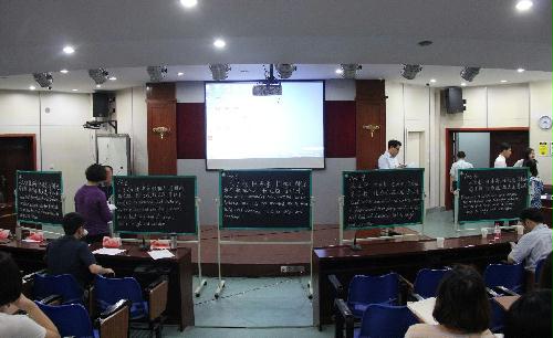 此次比赛分为模拟授课与课件制作能力展示和中英文粉笔字书写水平展示两大部分。在全英文模拟授课环节,选手自行选择了一课时中任意一段进行10分钟的教学活动展示。授课期间,选手们充分利用现代化教学技术,发挥个人优势,坚持“寓教于乐”理念,设计了各具特色的课堂活动,体现出外院学子良好的语言基本功和教学组织能力。模拟授课结束之后,在粉笔字书写展示环节,选手们按照要求在现场用粉笔书写了《三字经》和培根《论读书》(英)中的片段。
