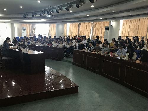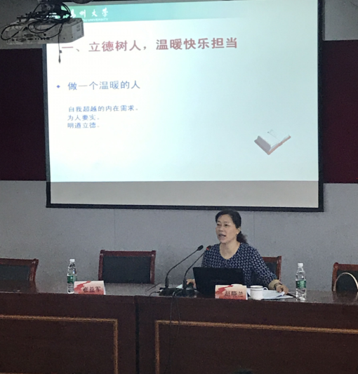 9月7日上午八点半,外国语学院在笃行楼N402报告厅举行研究生座谈会,荣幸邀请到校研工部部长赵晓兰老师出席,会议由院党委副书记崔益军主持;学院的109名研究生新生全部参加。