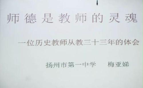 6月27日上午9点,由外国语学院主办的师德主题讲座在笃行楼四楼报告厅准时开始。讲座以“师德是教师的灵魂”为题,英语教育系主任陶竹担任主持,特邀扬州市第一中学的梅亚娣老师分享她从教33年的心得。