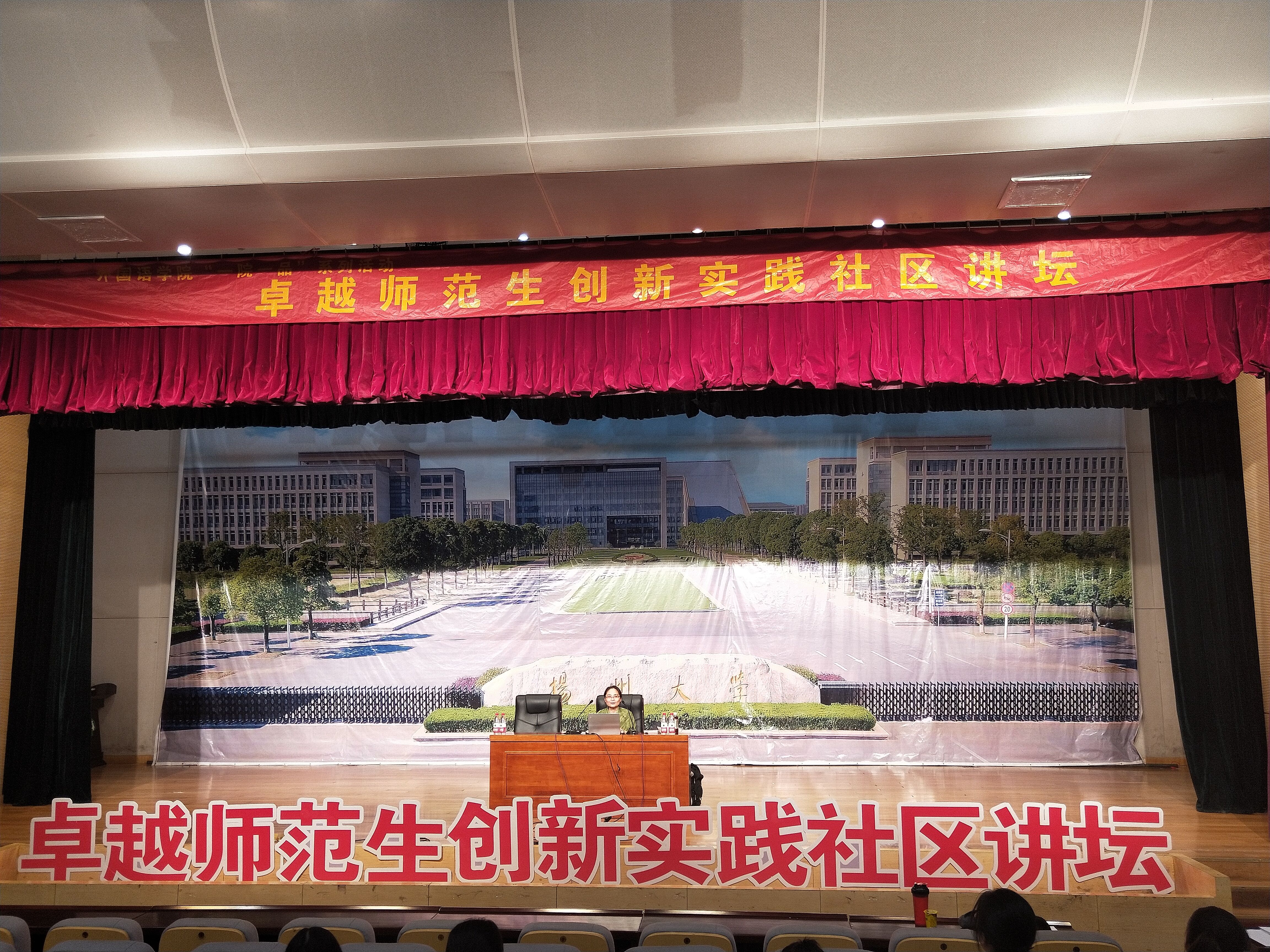 5月29日晚,外国语学院“一院一品”系列活动“卓越师范生创新实践社区讲坛”第二讲在扬子津校区昭文馆报告厅举行。本次活动邀请了扬州市职业大学人文学院现代汉语学科带头人柏莹博士主讲;活动由院长助理、英语(师范)专业负责人陶竹老师主持,学院16、17、18级全体师范生参加。