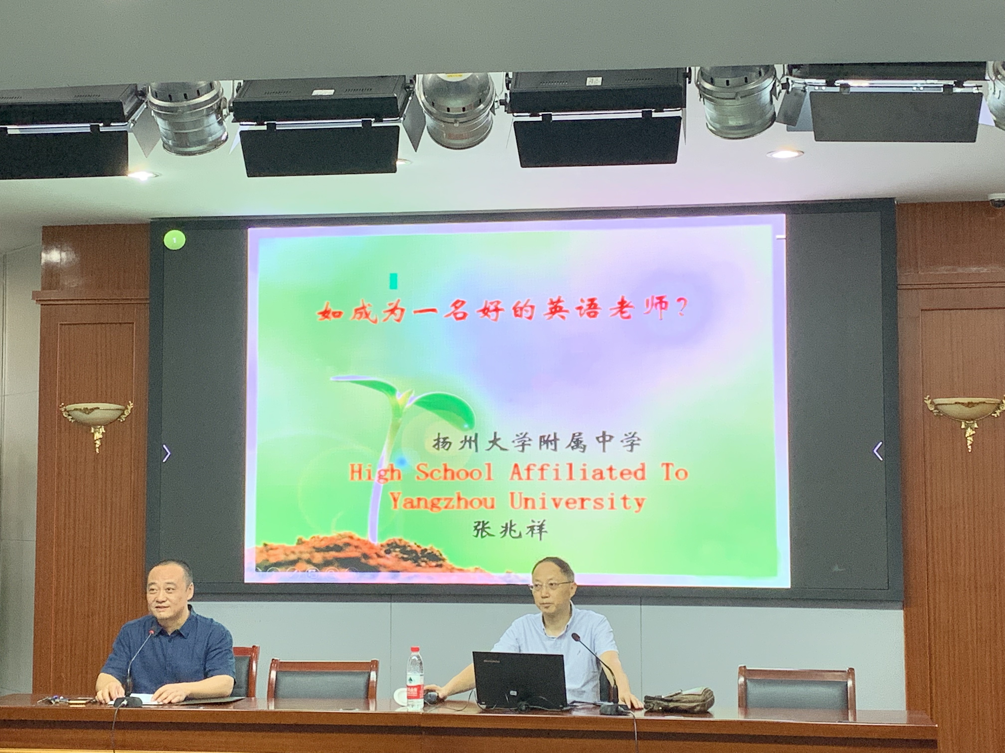 英语教育系邀请了学院专业教学督导室主任周维杰老师讲解英语教学设计,邀请扬州大学附属中学张兆祥主任、扬州教育学院附属中学应爱民校长分别就“如何做一名好的中学英语教师”、“课堂管理及班主任工作”开设专题讲座。翻译系副主任毛澄怡博士强调学以致用,指导毕业生们如何在实践中提升翻译能力,邀请上海善语文化传播有限公司联合创始人汤井旗基于实际工作案例为同学们讲解翻译工具的使用。商务英语系主任王洪刚教授、许国新副教授分别为商务英语专业毕业生基于商务交际案例讲解谈判技巧等,希望同学们在职场上要展现出专业的商务水准,提升跨文化交际能力。