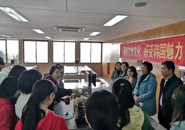 11月12日上午,我院朝鲜语1901班举行了“体验饮食文化,感受韩国魅力”文化体验班团活动。学院党委书记赵春丹,党委副书记毛连军,朝鲜语系系主任郑义香以及朴锦珠、邹爱芳、千恩花,外教李明姬等多名老师出席,班级全体学生参加,班主任吴花老师主持此次活动。