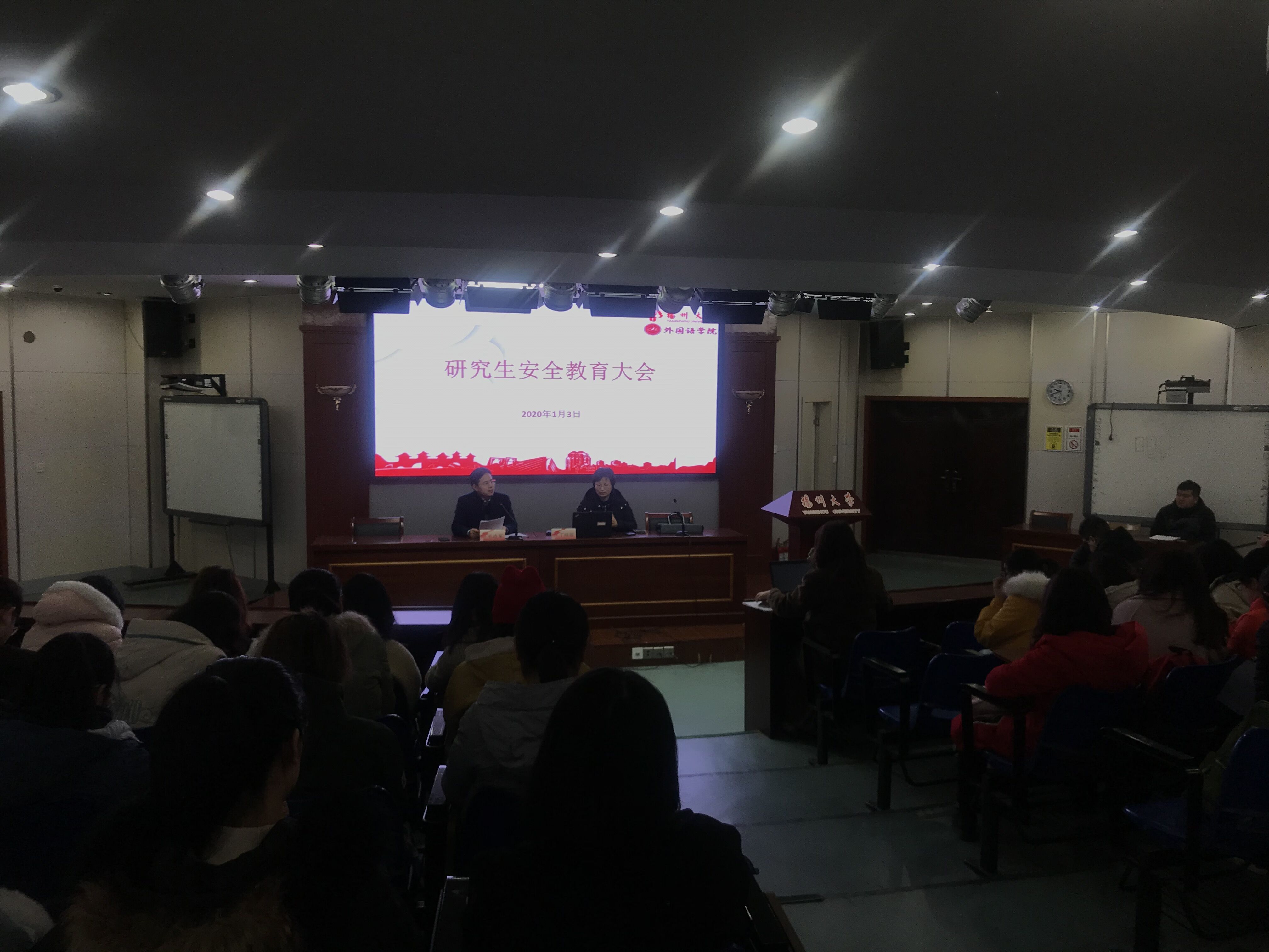 1月3日上午,外国语学院在笃行楼报告厅举行2020年学生安全教育大会暨寒假工作专题布置会,院党委副书记毛连军、副院长丁晓丽分别主讲,团委辅导员出席会议。