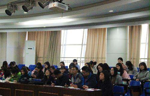 11月15日下午四点,外国语学院在笃行楼N402报告厅召开学习贯彻党的十九大精神专题党课。特邀校关工委理论宣传组费迅教授为我院全体学生党员做解读党的十九大精神的报告,活动由院团委副书记孙月老师主持。