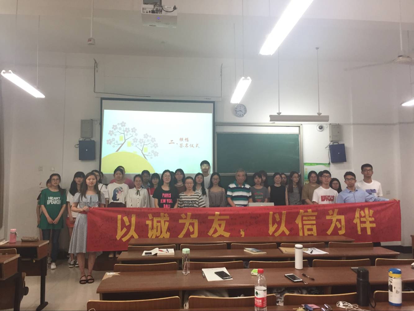 在签名仪式中,虞教授在“以诚为友、以信为伴”的横幅上郑重地签上名字,同学们纷纷响应号召,积极参与这项活动。此外,商英1501班的同学还精心制作了情景剧,展现了校园中某些同学购物付款时利用支付宝、微信等形式的一些不诚信行为,用贴近同学们的生活的案例告诫同学们要诚信做人,给同学们留下了深刻的印象。大家也纷纷分享了自己的诚信故事,如学术诚信、商务诚信、为人诚信等等,生动地展示了诚信带来的人格魅力。活动最后,同学们还将自己的专业知识与诚信相结合起来,分享了关于诚信的英语格言翻译,让诚信的理念更加深入人心。