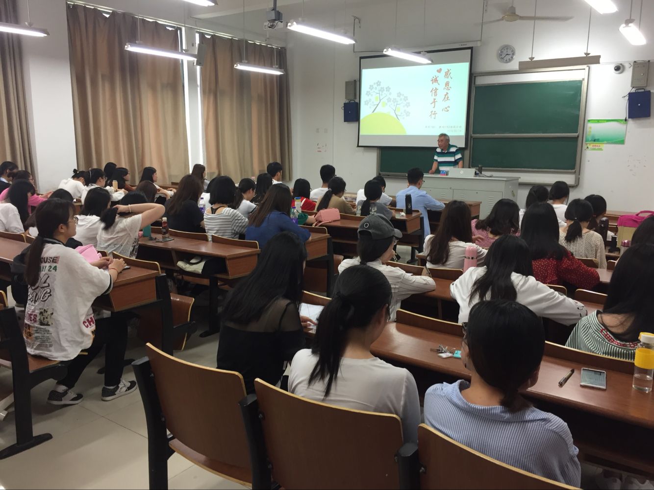 为了增强班级团支部的凝聚力和战斗力,引导和教育当代大学生进一步提高自己的思想觉悟,懂得感恩、诚信做人,真正起到先锋带头作用,商英1501与、翻硕1702班在文津楼举行了以“感恩在心,诚信于行”为主题的班团活动。本次活动有幸邀请到校关工委理论宣传组虞明甫教授出席。