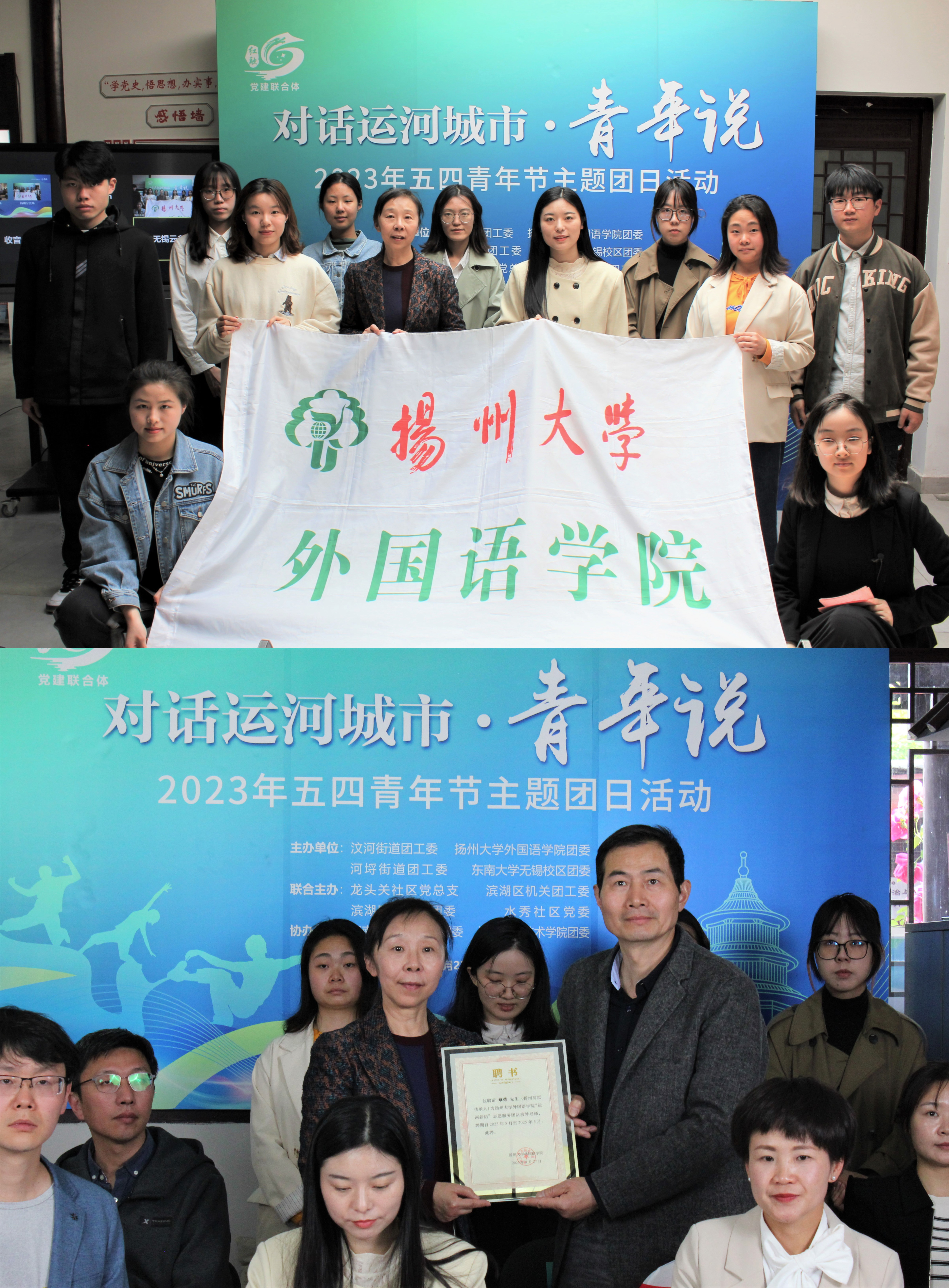 五四青年节来临之际,扬州大学外国语学院和扬州市汶河街道团工委、东南大学(无锡校区)、江南大学、无锡市河埒街道团工委共同举办“对话运河城市·青年说”主题团日活动,开启了一场云游之旅。