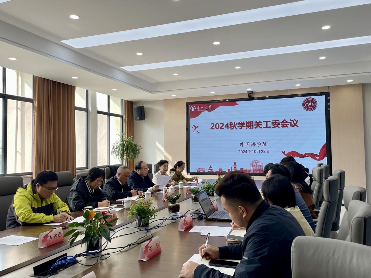 10月23日上午,学院在笃行楼N423会议室召开了2024年度秋学期学院关工委工作会议。校关工委办公室主任(驻会)兼副秘书长刘汉柏,校关工委副主任、院关工委常务副主任赵春丹,瘦西湖校区退休第一党支部书记姚蔚,院党委书记、关工委名誉主任居学明,院关工委副主任刘胜乐出席会议。会议由院党委副书记、关工委主任王晖主持。