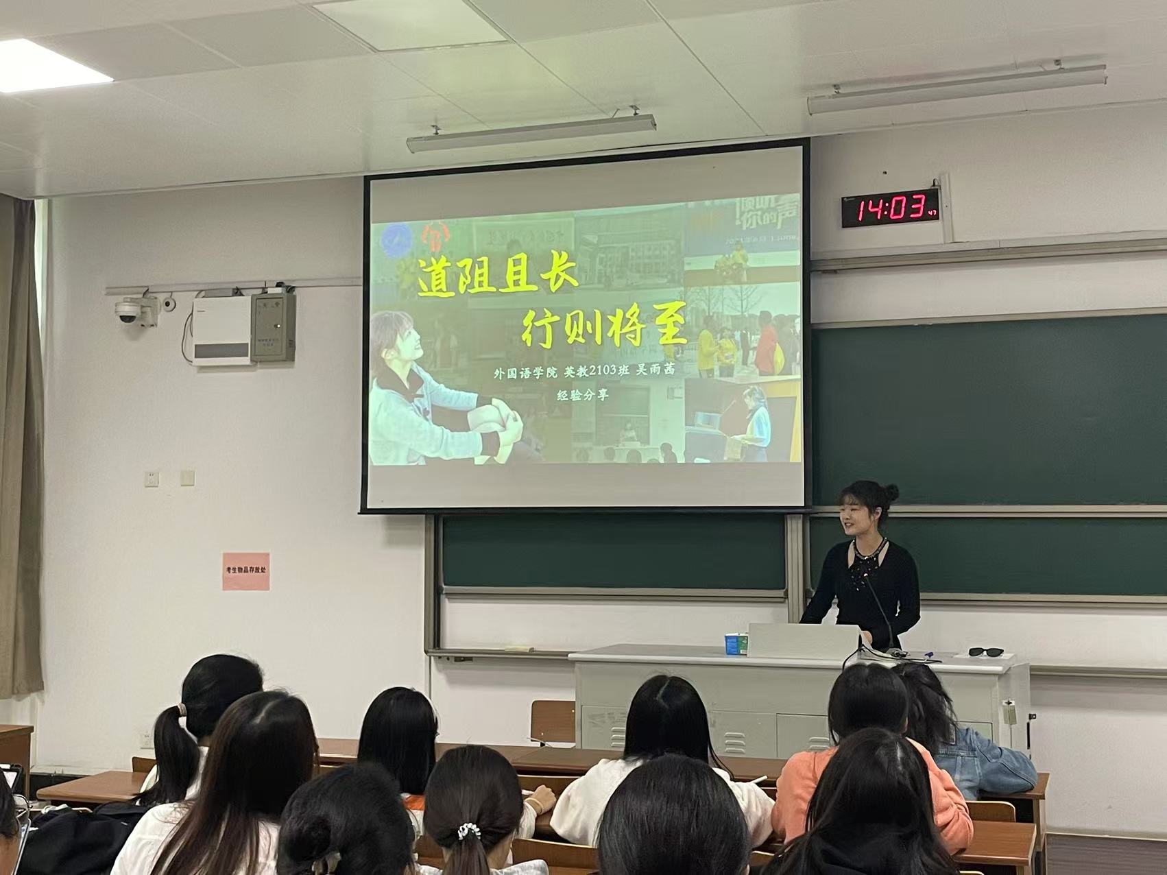 首先,保研至南京师范大学的吴雨茜同学以“道阻且长,行则将至”为主题,分享了自己在英语学习中的心得体会。她强调,英语作为一门语言学科,基础知识的牢固至关重要,无论是词汇量的积累、语法的精通,还是听说读写能力的全面提升,都是不可忽视的基石。同时,吴雨茜鼓励新生们积极参与国际交流、阅读英文原著等活动,以拓宽国际视野,丰富文化底蕴。