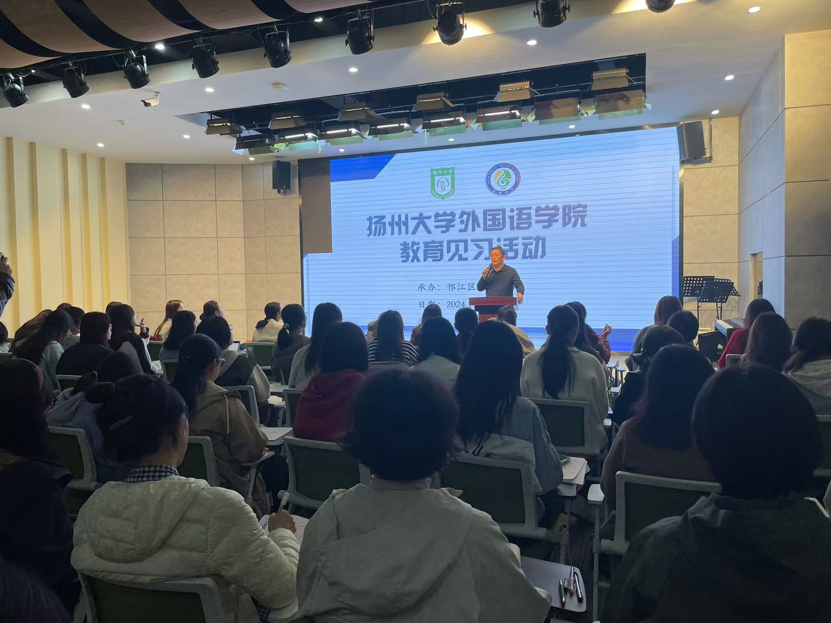 随后,瓜洲中学副校长张志刚进行了总结发言。他首先对23级英语师范专业学生的到来表示热烈欢迎,并简要介绍了瓜洲中学的教学特色和办学理念。他强调,教育见习是师范生培养的重要环节,希望学生们能够珍惜这次机会,认真观察、积极思考、勇于实践,不断提升自身的教育教学能力。同时,他也对瓜洲中学的老师们提出了殷切希望,希望他们能够继续发扬优良传统,不断创新教学方法,为培养更多优秀的英语教师贡献自己的力量。