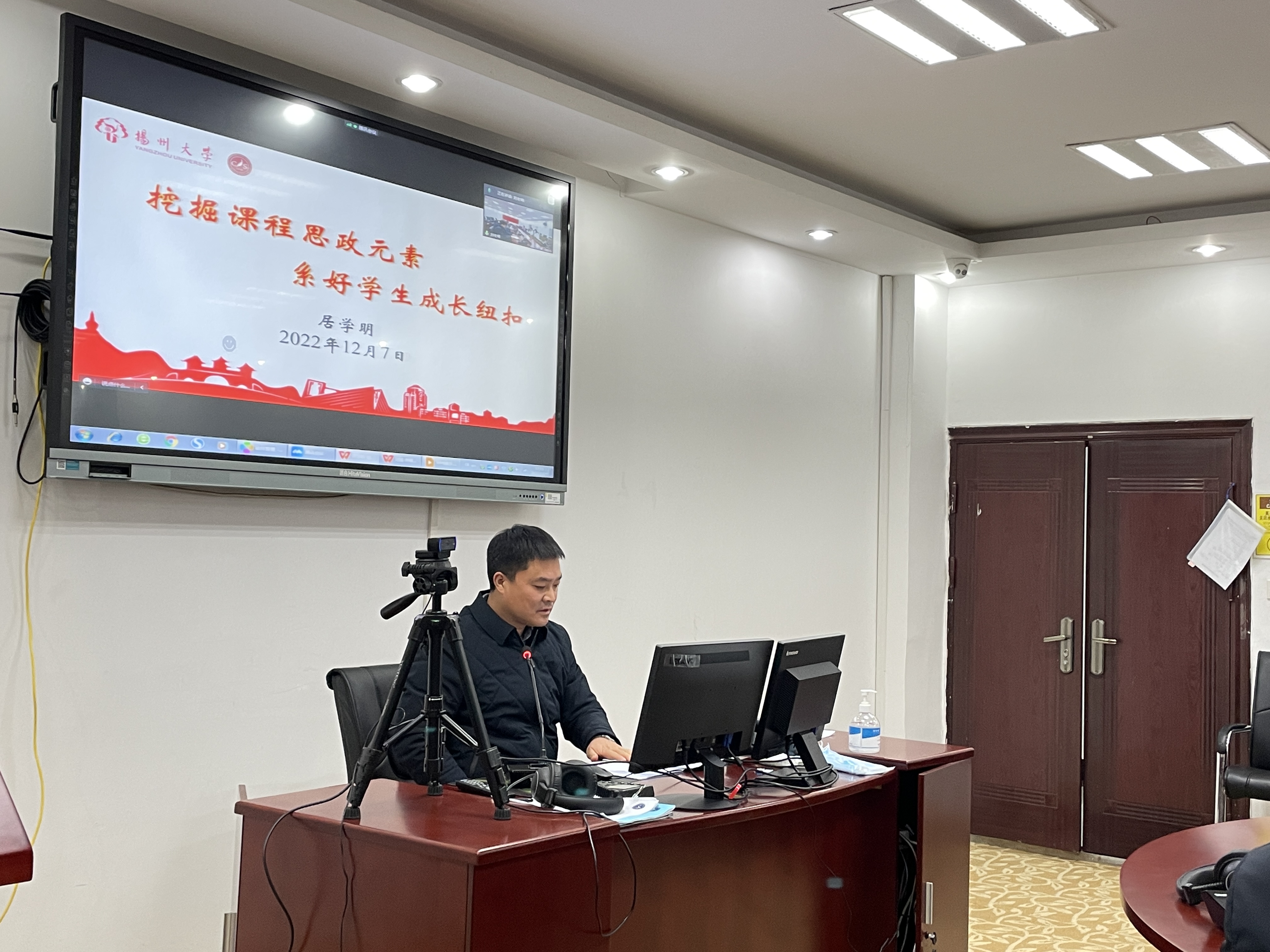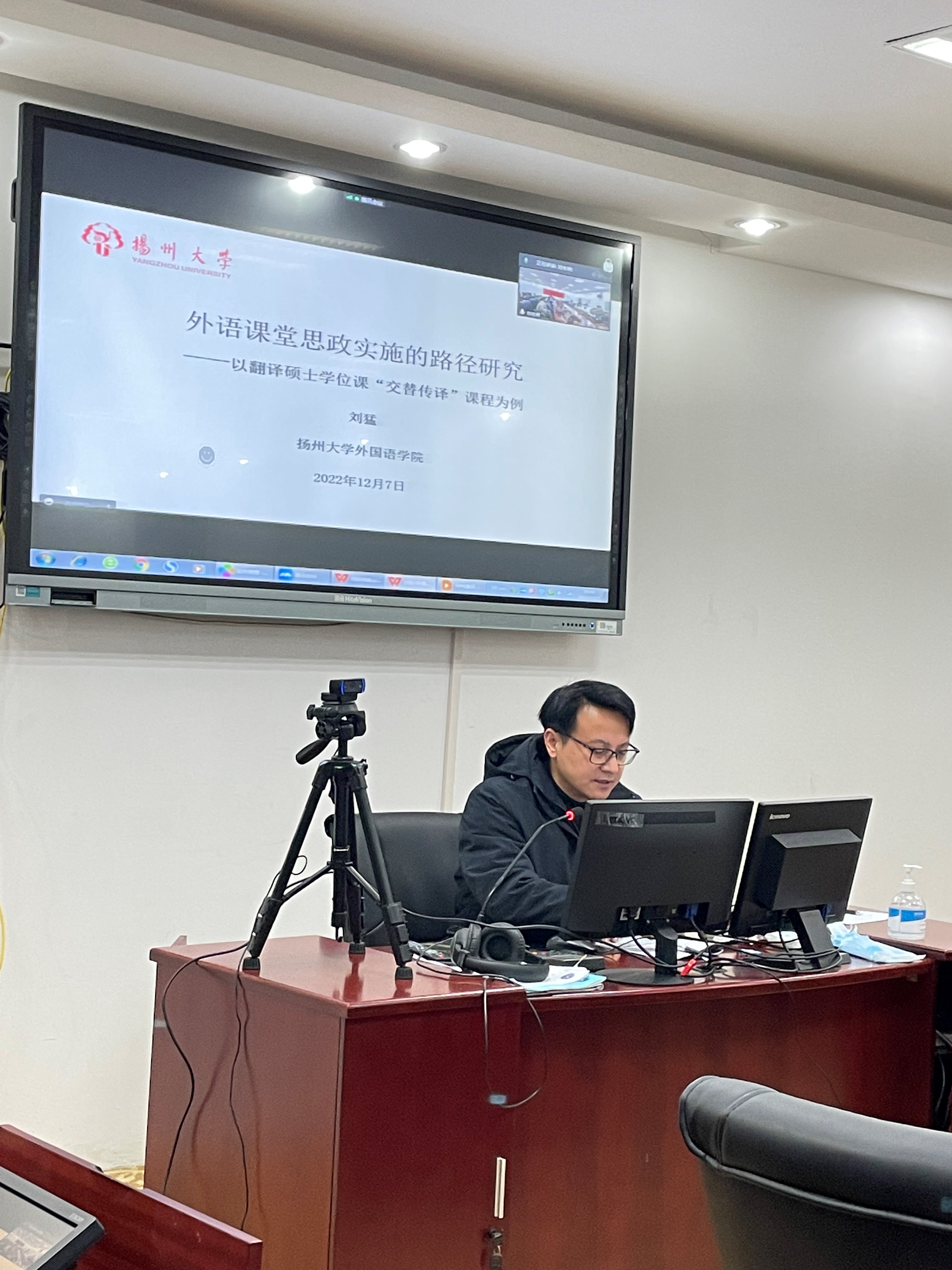 12月7日,翻译系组织全体教师听取了居学明书记关于课程思政的报告,刘猛主任进行了经验分享。