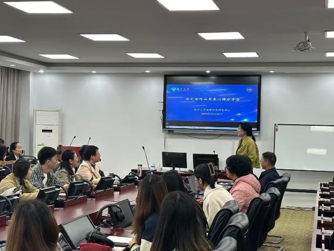 2024年11月14日,翻译系面向全院青年教师召开“论文写作发表心得分享会”,分享会邀请学院专家们向大家介绍了自己的科研创作的经验和一些技巧,鼓励青年教师提高学术研究水平,以研促教,更好的提高授课质量。