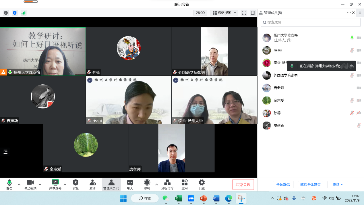 为提高教师的教学水平,日语系于2022年11月9日下午开展了线上教研活动。活动由陈安梅主任主持,日语系全体老师参与此次研讨活动。