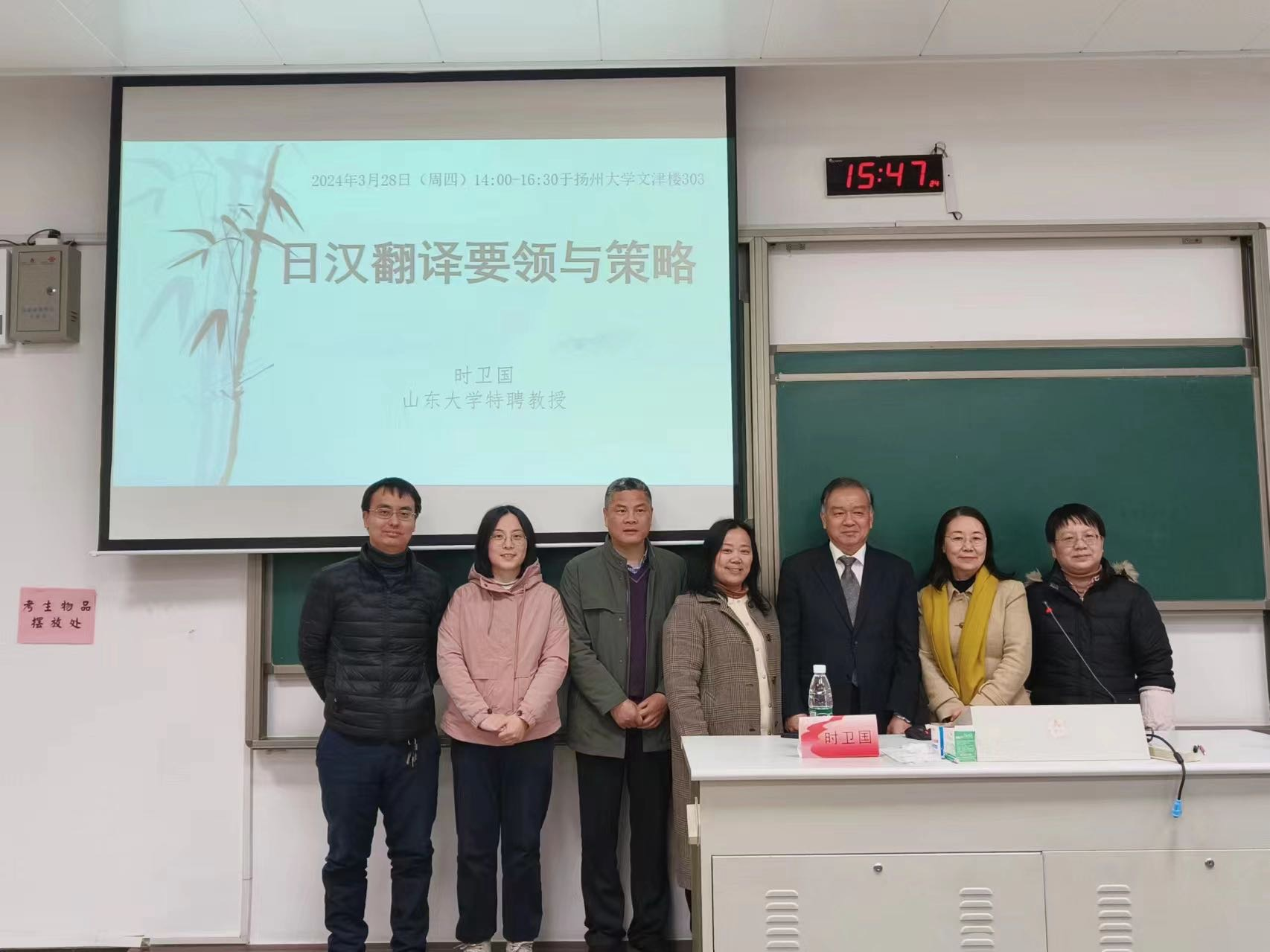 2024年3月28日,日语专业邀请山东大学特聘教授时卫国老师为我专业师生做了题为“日汉翻译要领与策略”的讲座。这次讲座为师生们提供了一次难得的学习机会,促进了师生对日汉翻译的深入探讨与交流。讲座前,围绕日语专业的建设和发展,时老师与院长和部分教师进行座谈。