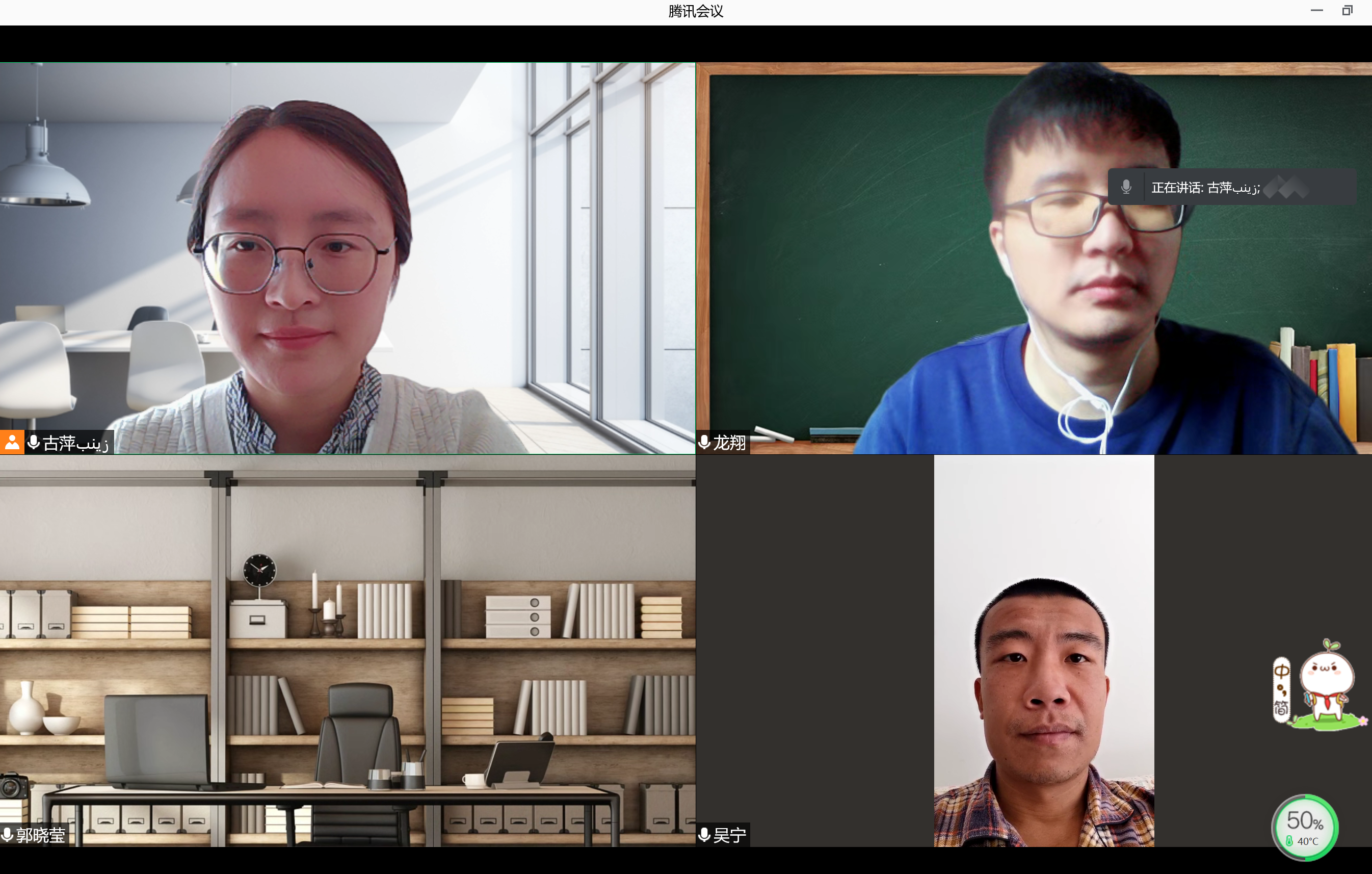 古萍老师首先分享了自己的教学方式和教学心得。她提出,以“腾讯会议”作为直播虚拟课堂,“屏幕共享”触控笔即时书写的板书与师生教学材料,师生“语音视频”实时互动讨论,此外,使用QQ群进行课后交流、作业的收集与反馈等。通过建立以“腾讯会议”为主、QQ群为辅的教学联动平台,基本保障了在线学习与线下课堂教学同质等效。