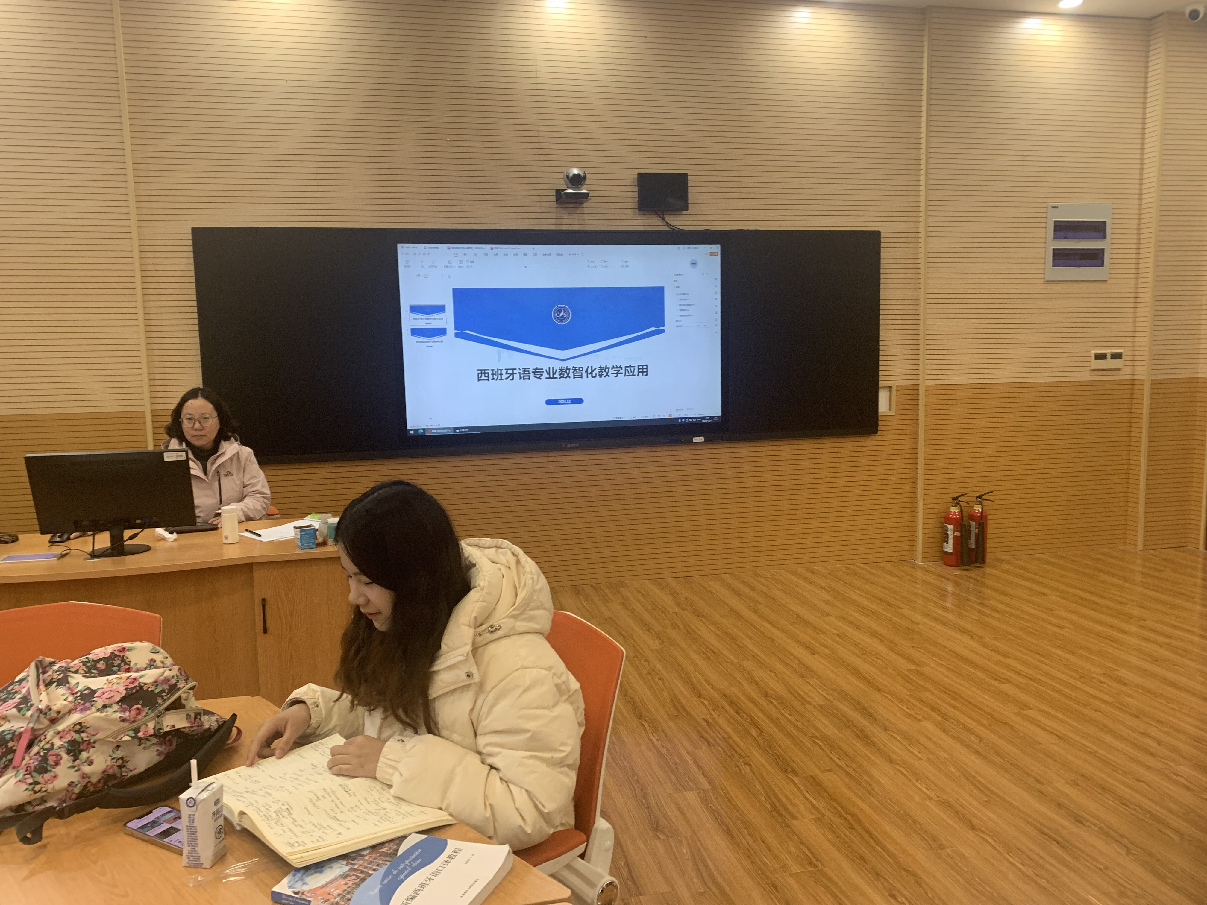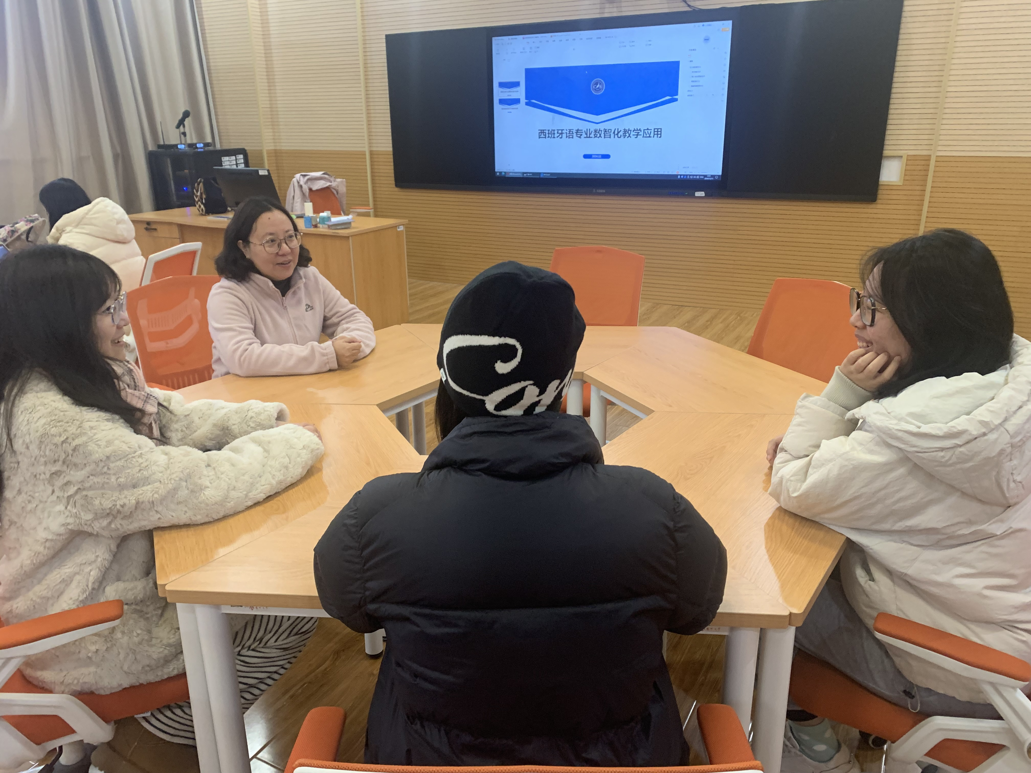 在数智技术蓬勃发展的时代背景下,西班牙语教育要主动适应新时代的需求,为此西班牙语专业召开会议,结合当前数字化教材的现状,探讨了西班牙语专业数智化教学应用,展望了未来教材向“可视、可听、可互动”的方向发展的无限可能。专业主任将此前参加全国西班牙语年会的所见所学与专业教师及学生交流分享,鼓励师生充分利用数字化工具,以优化教学体验,适应现代教育对多样化和高效化的需求。