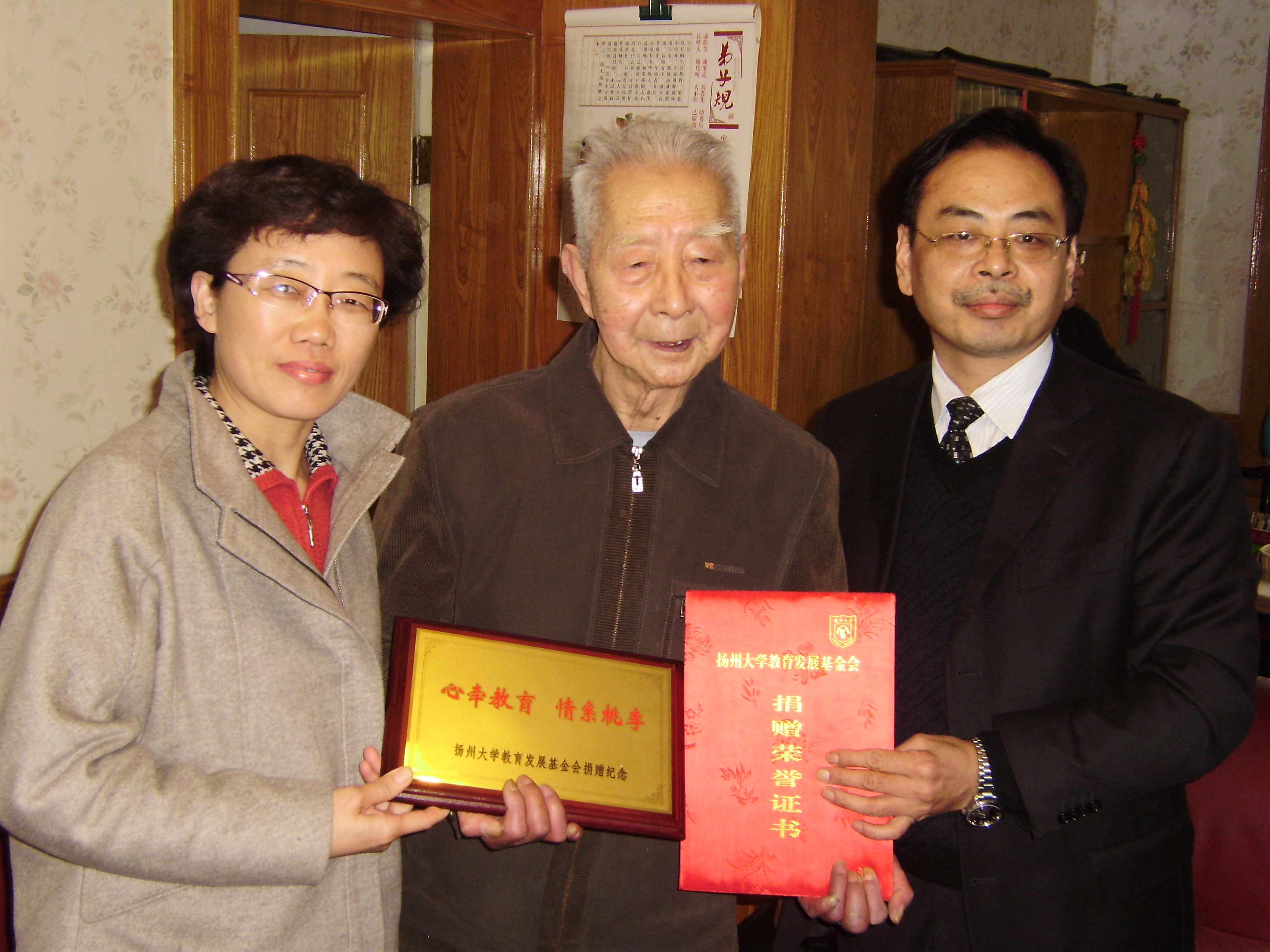三尺讲台,染苍苍白发;桃李满园,谱人生华章。为迎接110周年校庆,4月6日,学院党委书记朱清、院长俞洪亮等一行6人专程赴南通看望了我院德高望重的老教师王楫教授。今年已经93岁高龄的王楫教授早年毕业于国立西南联合大学外国语言文学系,曾经担任扬州师范学院的前身苏北师范专科学校中文科主任,1973年调入外语系,从事翻译理论与实践教学和研究。他学贯中西,治学严谨,教书育人,深受师生的爱戴。其翻译的《欧·亨利短篇小说选》、《密得洛西恩监狱》等名著一版再版,成为文学翻译的经典。王楫教授桃李满天下,1985年担任我院首批硕士研究生导师。今年,王楫教授将自己收藏的400多册图书以及其他珍贵的教学科研资料无偿捐献给学院,以表达他对校庆的祝贺之意。