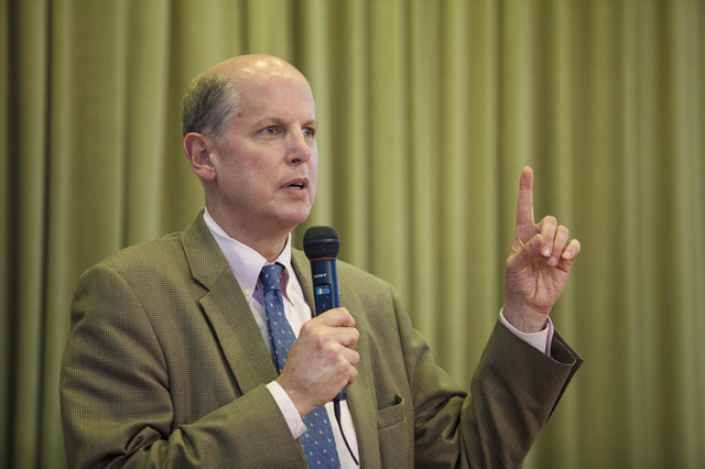 5月11日下午,美国哈佛大学英文系主任詹姆斯·辛普森(JAMES SIMPSON)教授应邀为我院师生作了题为“Sir Gawain and the Green Knight”的学术报告。辛普森教授以“我认为《高文爵士和绿衣骑士》的故事很愚蠢”开始,以平稳的速度、幽默的风格将英国中古时期著名的浪漫史诗《高文爵士与绿衣骑士》的故事娓娓道来,引得台下师生阵阵笑声。接着,辛普森教授从“A Romance”, “A Complicated Romance”以及 “An Anti-Romance”三个部分阐释了他对《高文爵士和绿衣骑士》的解读。