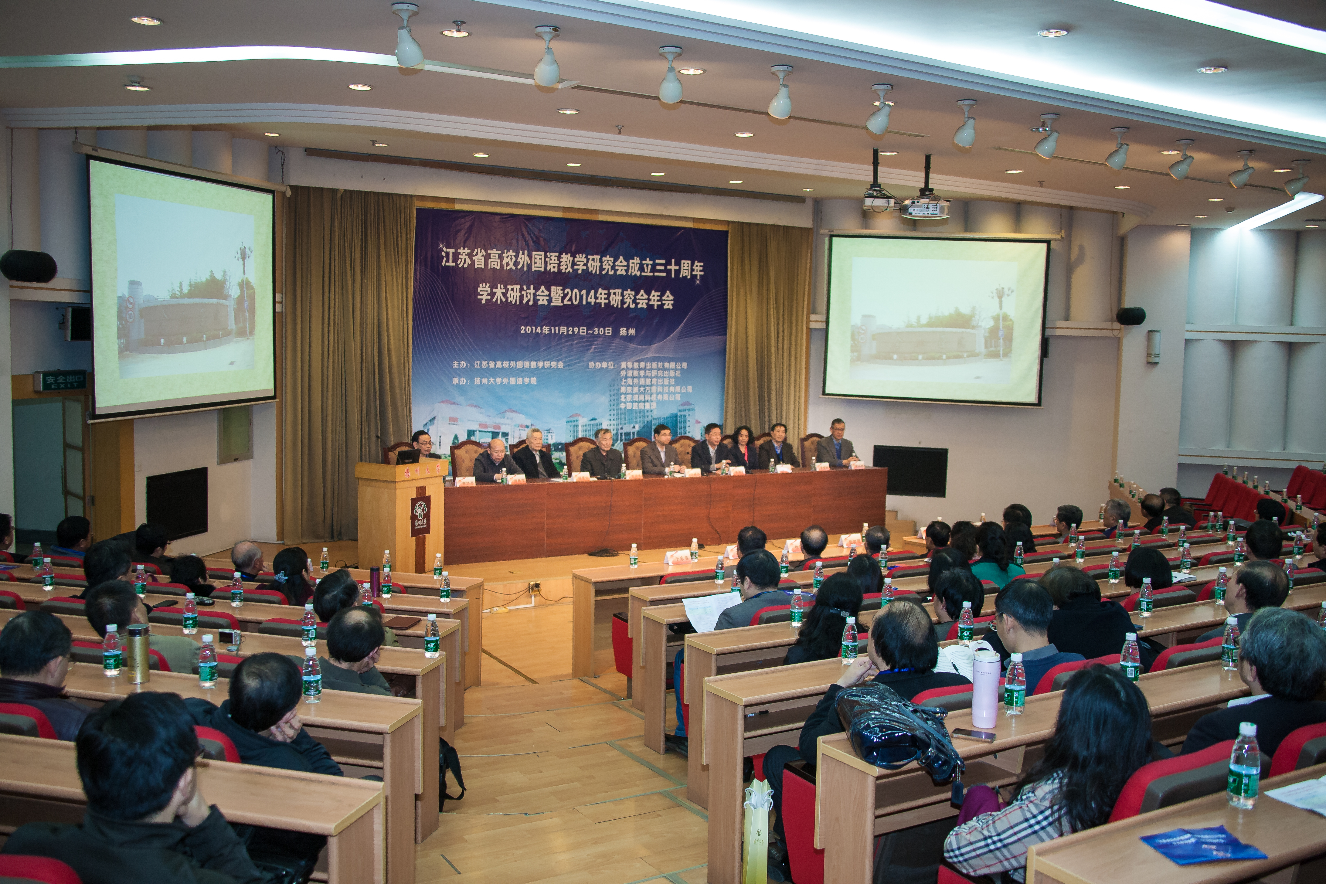 11月29日至30日,由江苏省高校外国语教学研究会主办、我院承办的江苏省高校外国语教学研究会成立三十周年学术研讨会暨2014年年会在我校荷花池校区逸夫图书馆报告厅隆重召开。省教育厅副厅长丁晓昌出席开幕式并致辞。校党委书记夏锦文亲切看望了出席会议的代表。副校长胡效亚出席开幕式并致欢迎辞。