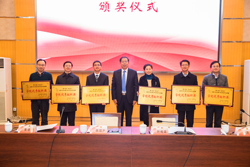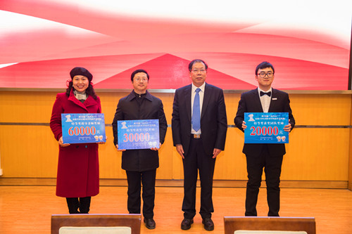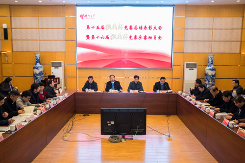 12月26日上午,学校在荷花池校区教学主楼二楼多功能厅隆重召开第十五届全国“挑战杯”竞赛总结表彰会暨第十六届全国“挑战杯”竞赛参赛动员会。校党委书记姚冠新出席会议并为我院特等奖团队、指导教师颁发奖励,校党委副书记叶柏森、副校长黄建晔出席会议,副校长俞洪亮主持会议。