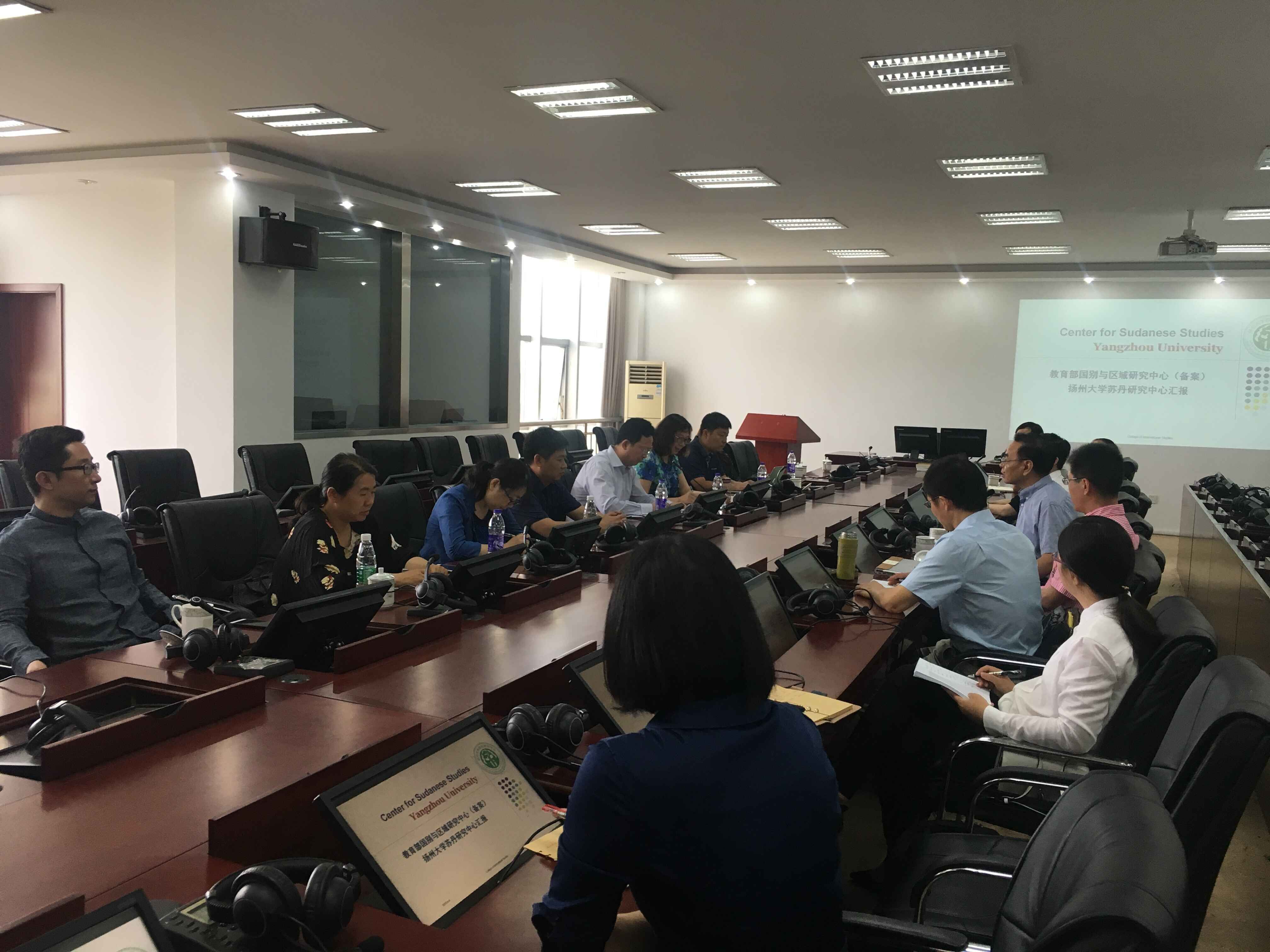 2018年6月4日上午,中国社会科学院西亚非洲所朱伟东研究员、《西亚非洲》编辑部主任安春英研究员、副主任詹世明副研究员、冯基华副研究员、王洪一副研究员、刘中伟副研究员、樊小红助理研究员、赵苹助理研究员等人来我校苏丹研究中心考察调研。苏丹研究中心主任、扬州大学副校长俞洪亮教授出席活动,活动由苏丹研究中心副主任、外国语学院院长王金铨教授主持,人文社科处副处长沈意文、外国语学院党委书记刘胜乐、副院长于建华、缪海涛、研究中心特聘研究员姜恒昆、研究中心研究人员石志宏博士、周军博士、傅海娜博士及阿拉伯语系教师参加了本次活动。