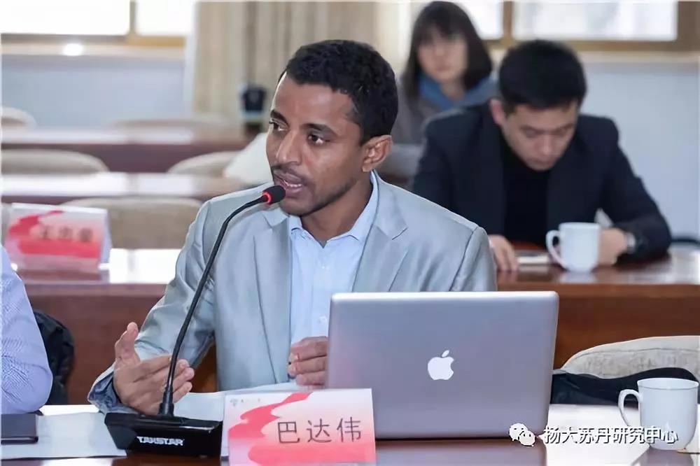 扬州大学苏丹研究中心苏丹籍研究人员安瓦尔(Anwar Yousif Mohammad)演讲题目为“对中苏关系的几点思考”。安瓦尔梳理了中国与苏丹关系在1950年代和1960年代的开端与发展,然后描述了中国在卫生、教育和基础设施等不同发展领域对苏丹的援助与帮助,同时认为“一带一路”对于苏丹来说是一个可资利用的宝贵机会。安瓦尔总结指出,在经济、政治、外交以及其它不同领域,中苏关系无论在草根阶层还是上层建筑层面都被认为是一个极好的关系样本,同时有益于两个国家;这一关系未来有望带来更多的互惠。安瓦尔最后指出,扬州大学苏丹研究中心的建立,通过举行研讨会、科研人员互访、开展联合研究等方式,可以极大促进两国相互了解和交流。