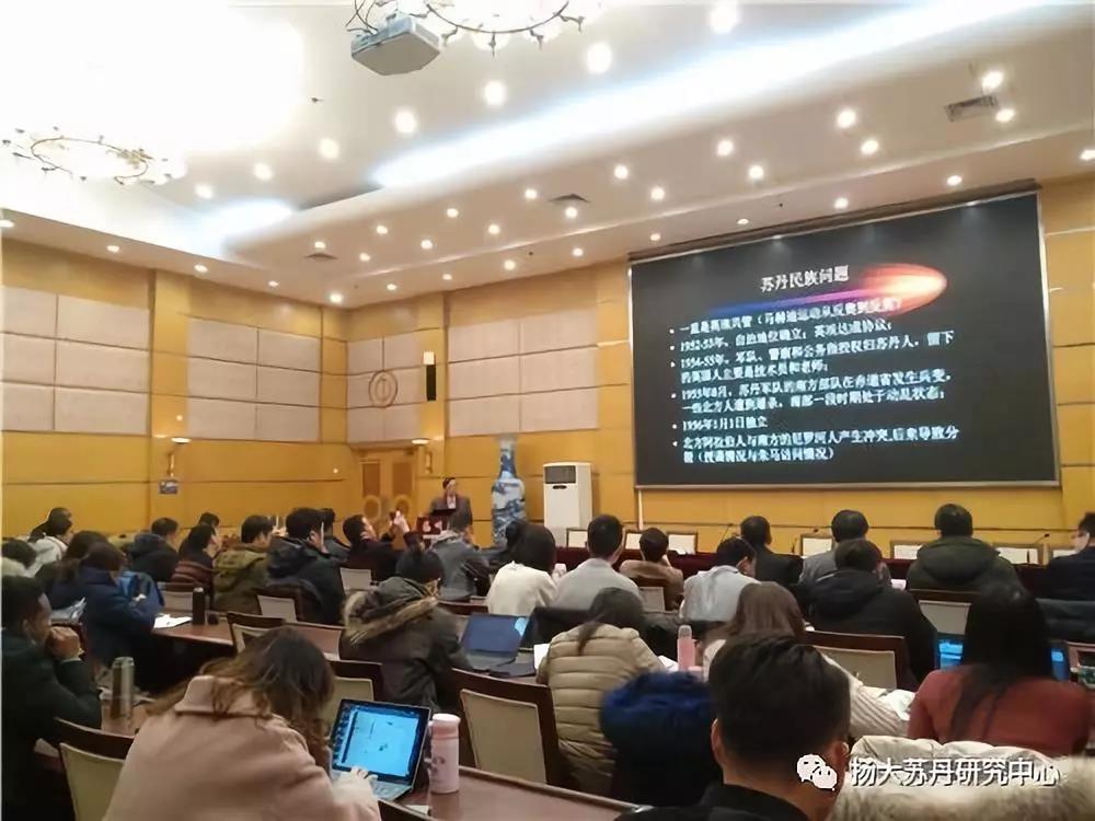 2018年12月29日,扬州大学苏丹研究中心举办了首届“中苏关系高层论坛暨苏丹问题学术研讨会”。来自中国非洲史研究会、中国亚非学会、中国中东学会、中国社会科学院西亚非洲研究所、北京大学、清华大学、南京大学、上海外国语大学、华东政法大学、浙江师范大学、西北大学、云南大学、西北政法大学、陕西师范大学、丹麦哥本哈根大学、扬州大学等国内外高校和国内涉非、涉苏企业及其它机构的代表们,就苏丹当前局势、苏丹国别研究以及更为广泛的区域与国别研究相关问题进行了深入探讨,包括2名苏丹籍学者在内的31位代表发表了主旨或主题演讲。澎湃新闻、江苏扬子晚报等媒体关注并报道了这次研讨会。