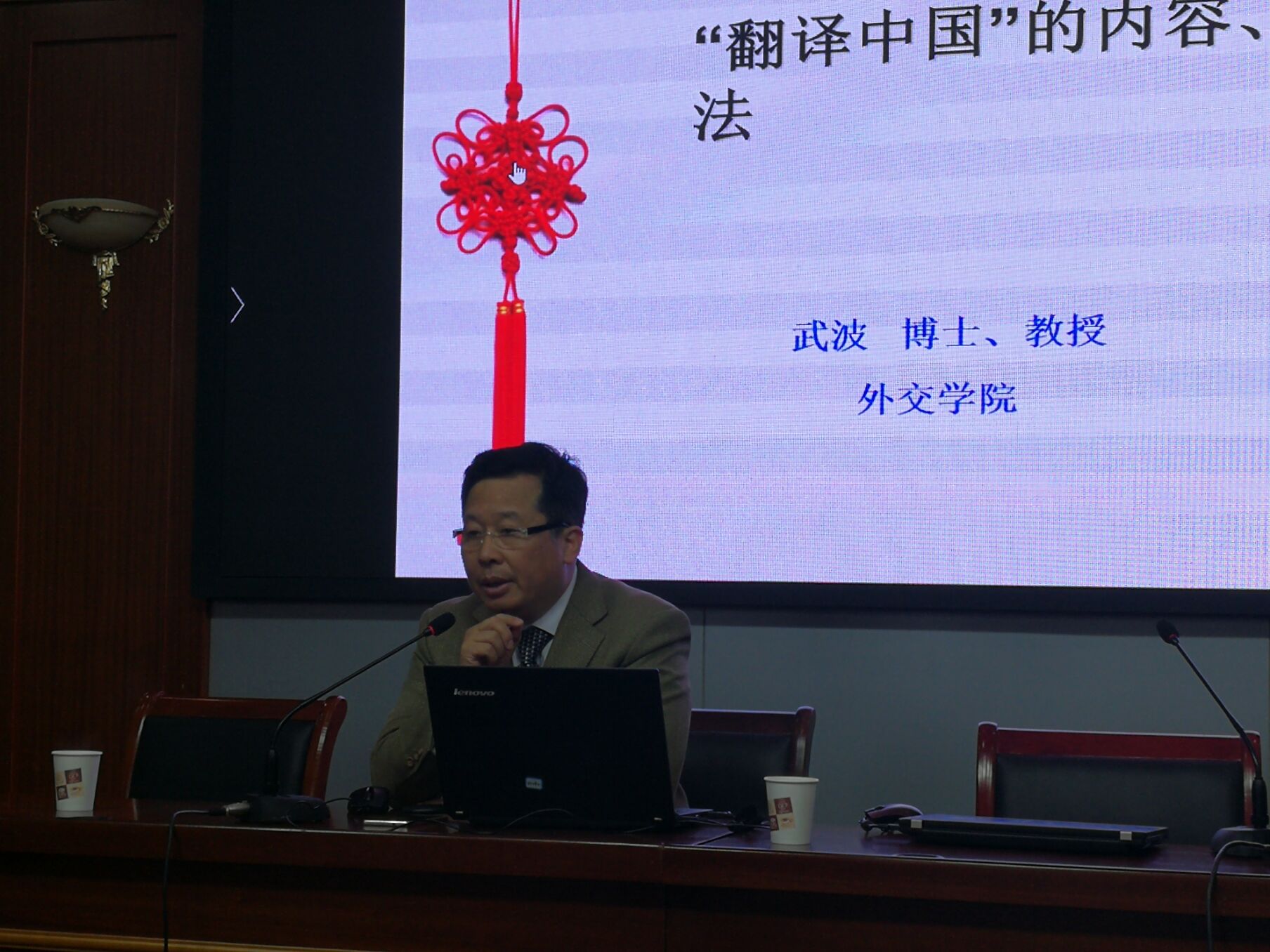 3月20日下午,外交学院英语系武波教授应邀来我院作题为“‘翻译中国’的内容、原则和方法”的学术讲座,讲座在笃行楼四楼报告厅举行,外国语学院副院长于建华教授主持了讲座。