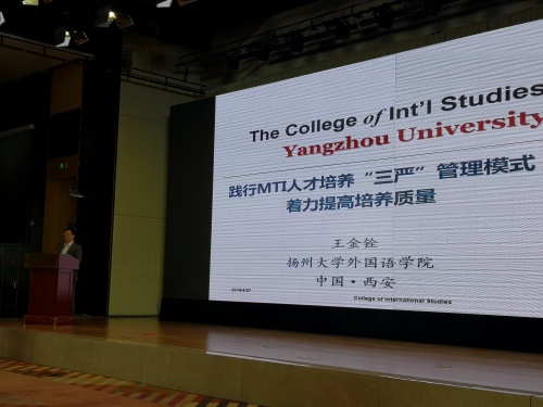 我院院长王金铨教授出席会议并受邀做了题为“践行MTI人才培养‘三严’管理模式,着力提高翻译硕士人才培养质量”的大会主题发言。王院长回顾了我院研究生教育发展历程,介绍了我院MTI学位点基本情况,聚焦我院MTI人才培养“三严”管理模式,从“严进口”、“严过程”、“严出口”三个方面总结了我院近十年MTI研究生教育的经验,引起兄弟院校的广泛关注。