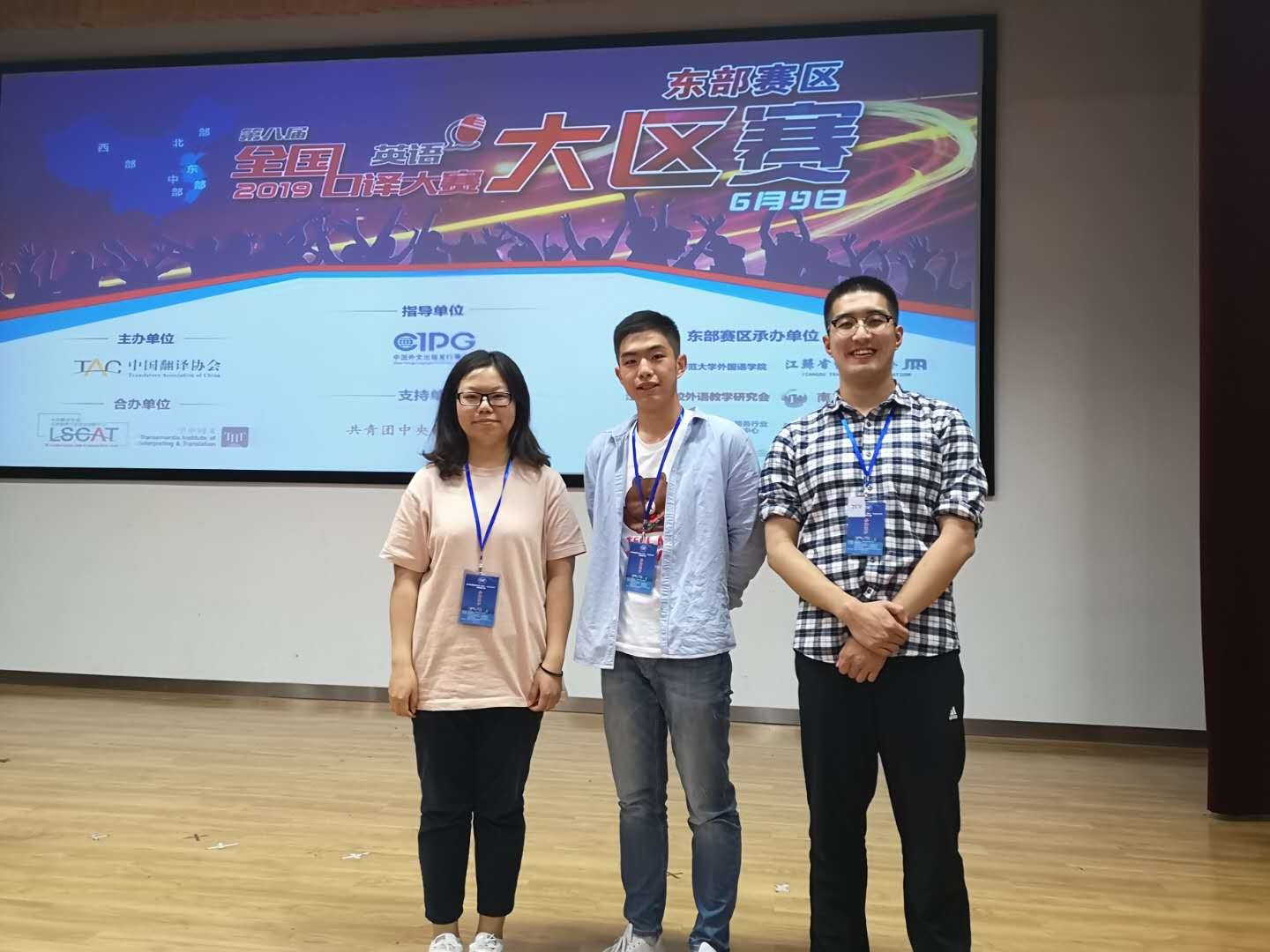 6月9日,第八届全国口译大赛东部赛区大赛于南京师范大学随园校区金陵女子学院隆重举行。来自上海、浙江、江苏、山东、安徽、福建、海南的近120名选手同台竞技。我院英教1601严铭荣获一等奖,翻硕1801阮茗柯、翻译1601周雪荣获三等奖。 严铭同学将代表华东赛区参加今年九月底在北京举办的全国口译大赛总决赛。